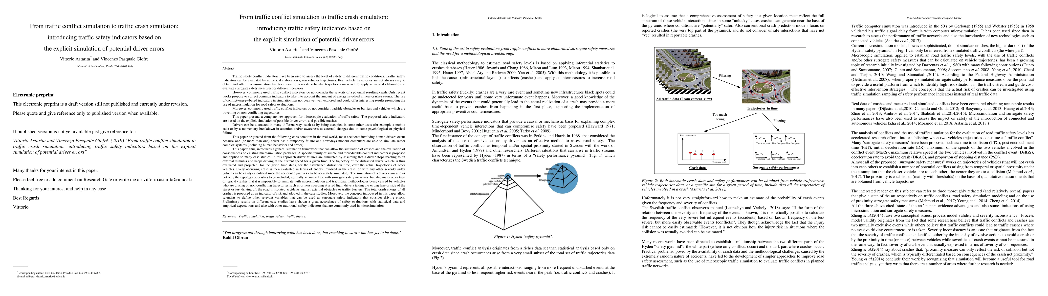This paper introduces a general simulation framework that can allow the simulation of crashes and the evaluation of consequences on existing microsimulation packages. A specific family of simple and reproducible conflict indicators is proposed and applied to many case studies. In this approach driver failures are simulated by assuming that a driver stops reacting to an external stimulus and keeps driving at the current speed for a given time. The trajectory of the distracted driver vehicle is thus evaluated and projected, for the given time steps, for the established distraction time, over the actual trajectories of other vehicles. Every occurring crash is then evaluated in terms of energy involved in the crash, or with any other severity index (which can be easily calculated since the accident dynamics can be accurately simulated). The simulation of a driver error allows not only the typology of crashes to be included, normally accounted for with surrogate safety measures, but also many other type of typical crashes that it is impossible to simulate with microsimulation and traditional methodologies being caused by vehicles who are driving on non-conflicting trajectories such as drivers speeding at a red light, drivers taking the wrong lane or side of the street or just driving off the road in isolated accidents against external obstacles or traffic barriers. The total crash energy of all crashes is proposed as an indicator of risk and adopted in the case studies. Moreover, the concepts introduced in this paper allow scientists to define other relevant variables that can be used as surrogate safety indicators that consider driving errors. Preliminary results on different case studies have shown a great accordance of safety evaluations with statistical data and empirical expectations and also with other traditional safety indicators that are commonly used in microsimulation.