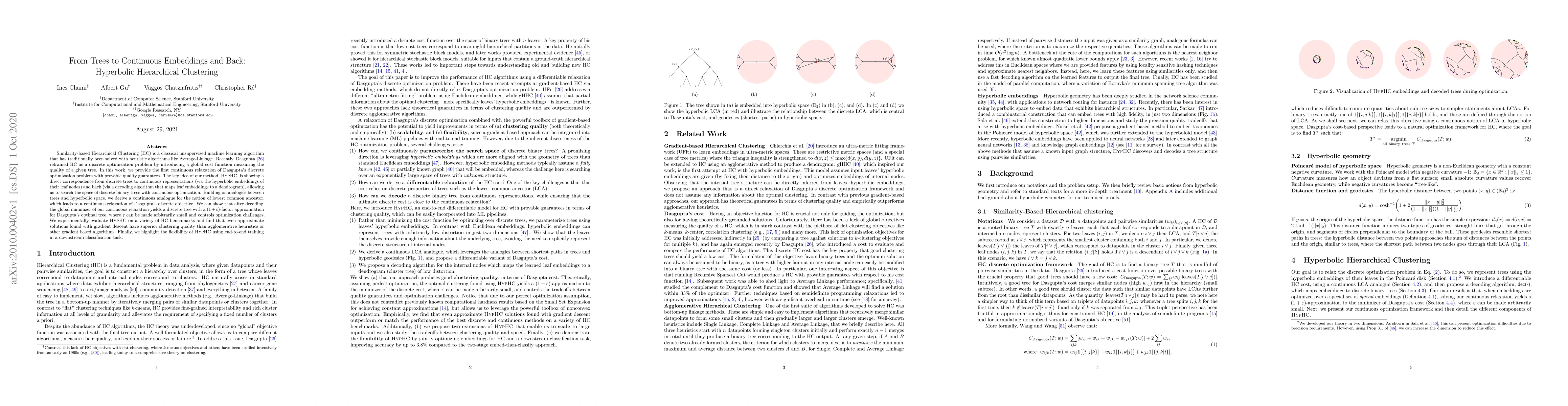 Researchers develop a new continuous relaxation of hierarchical clustering called HypHC, which uses hyperbolic embeddings to search for optimal tree structures and achieves comparable or superior clustering quality than traditional methods.