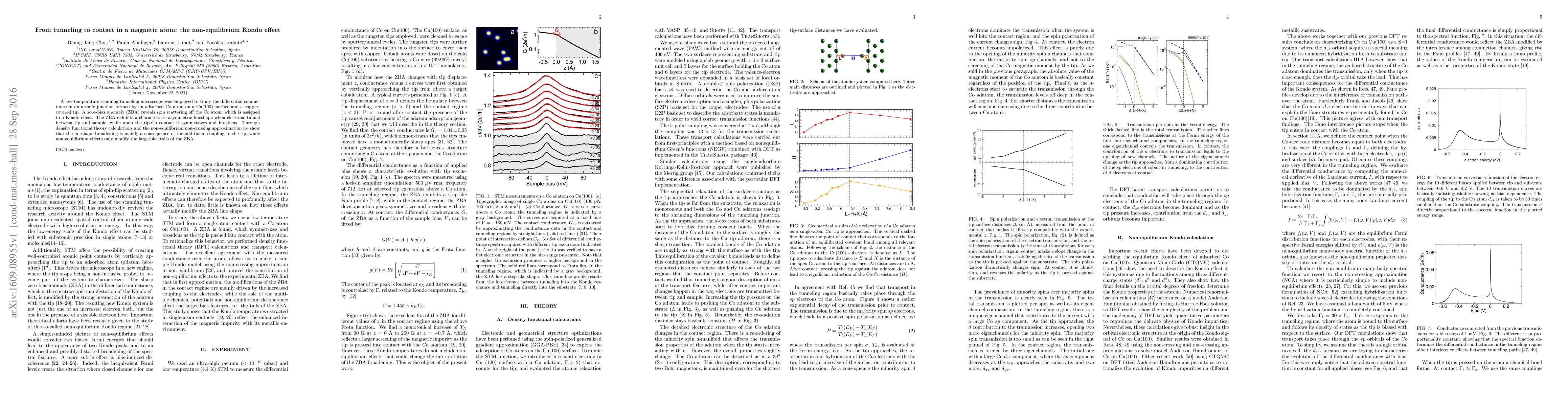 This paper investigates the Kondo effect in a magnetic Co atom on a Cu(100) surface using a scanning tunneling microscope, revealing a zero-bias anomaly indicative of spin scattering. The study finds that the anomaly's lineshape changes from asymmetric to symmetric upon contact, attributed to increased coupling to the tip, with non-equilibrium effects affecting only the anomaly's high-bias tails.