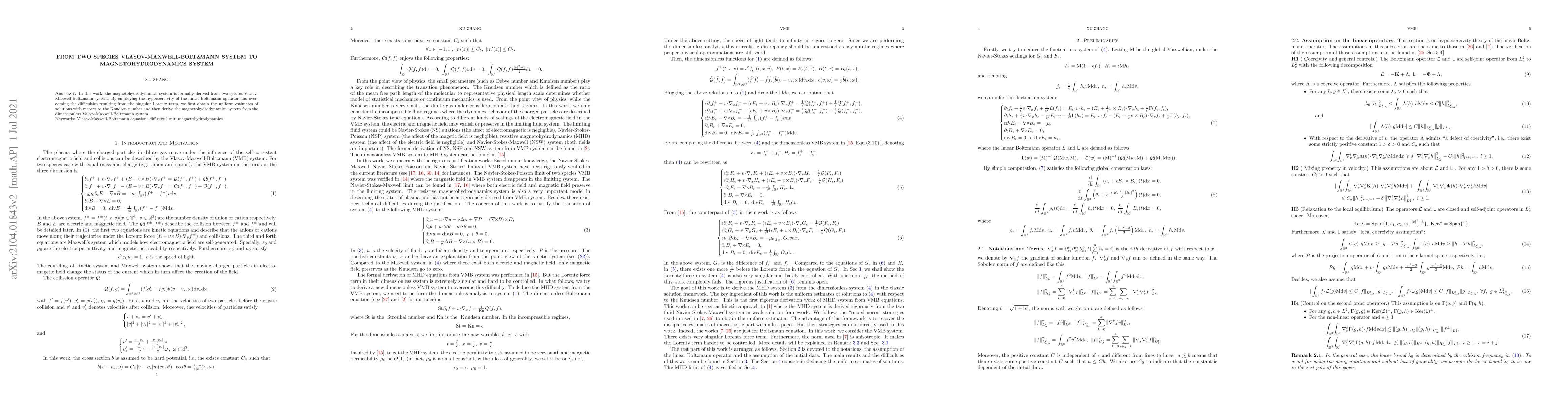 This paper derives the magnetohydrodynamics (MHD) system from a two-species Vlasov-Maxwell-Boltzmann system, leveraging hypocoercivity of the linear Boltzmann operator and addressing challenges from the singular Lorentz term to obtain uniform solution estimates and ultimately derive the MHD system.