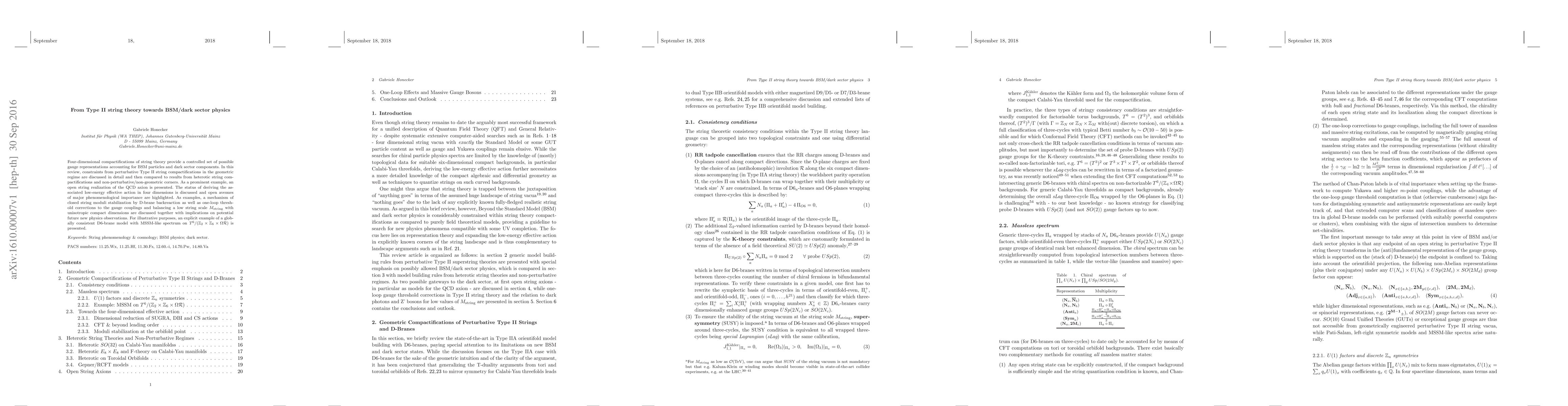 Four-dimensional compactifications of string theory provide a controlled set of possible gauge representations accounting for BSM particles and dark sector components. In this review, constraints from perturbative Type II string compactifications in the geometric regime are discussed in detail and then compared to results from heterotic string compactifications and non-perturbative/non-geometric corners. As a prominent example, an open string realization of the QCD axion is presented. The status of deriving the associated low-energy effective action in four dimensions is discussed and open avenues of major phenomenological importance are highlighted. As examples, a mechanism of closed string moduli stabilization by D-brane backreaction as well as one-loop threshold corrections to the gauge couplings and balancing a low string scale $M_{\text{string}}$ with unisotropic compact dimensions are discussed together with implications on potential future new physics observations. For illustrative purposes, an explicit example of a globally consistent D6-brane model with MSSM-like spectrum on $T^6/(\mathbb{Z}_2 \times \mathbb{Z}_6 \times \Omega {\cal R})$ is presented.