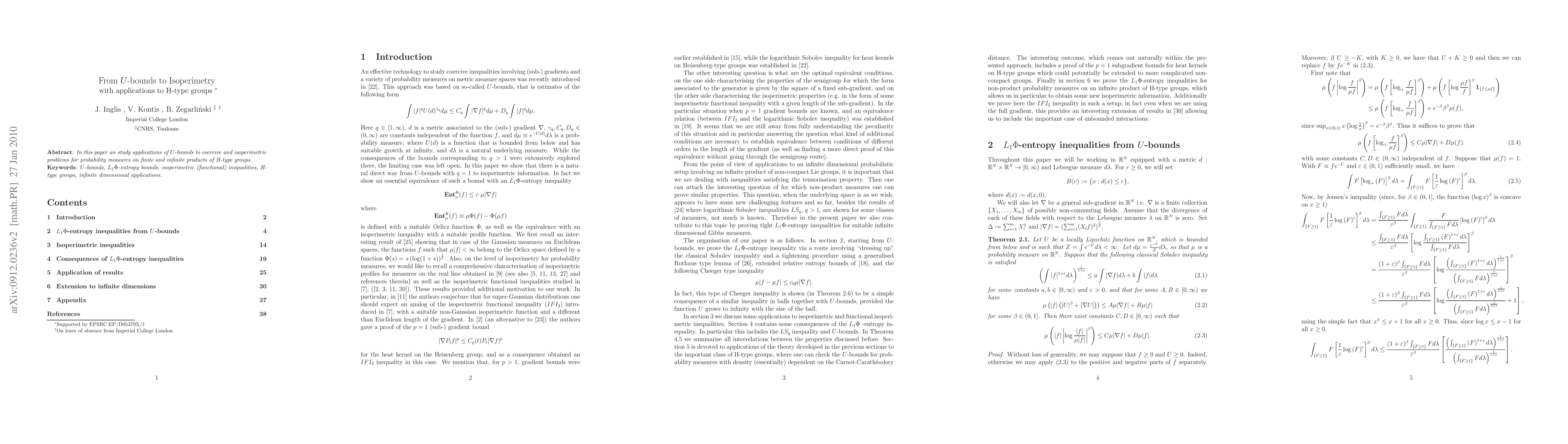This paper applies U-bounds to H-type groups for coercive and isoperimetric problems, exploring their connections to finite and infinite products, with implications for probability measures.