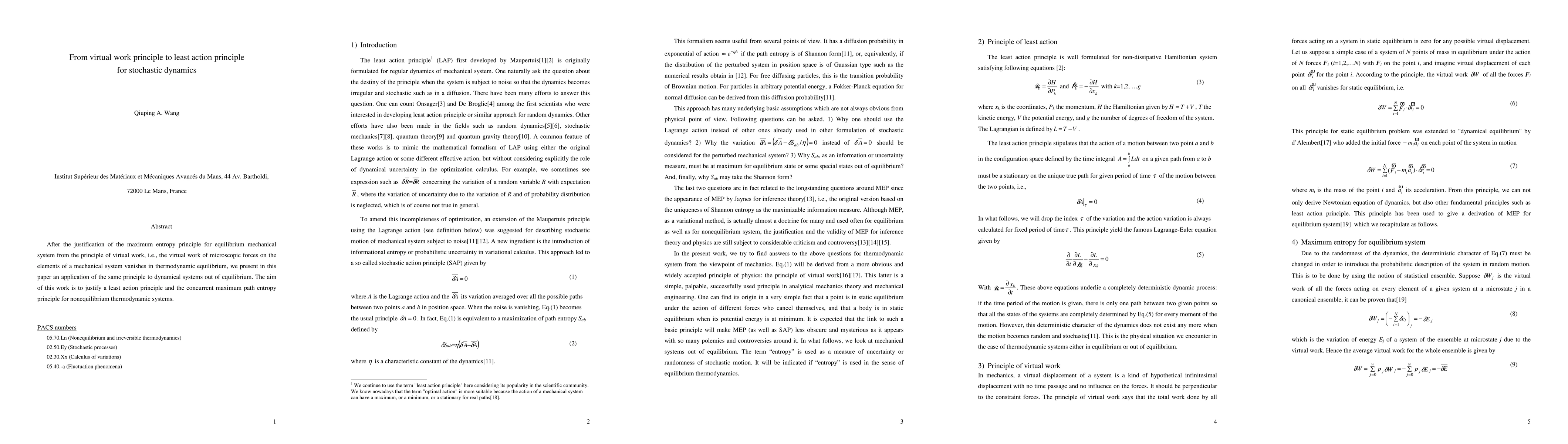 This paper extends the principle of virtual work to justify the maximum entropy principle for out-of-equilibrium dynamical systems, aiming to establish a least action principle and a maximum path entropy principle for nonequilibrium thermodynamics.