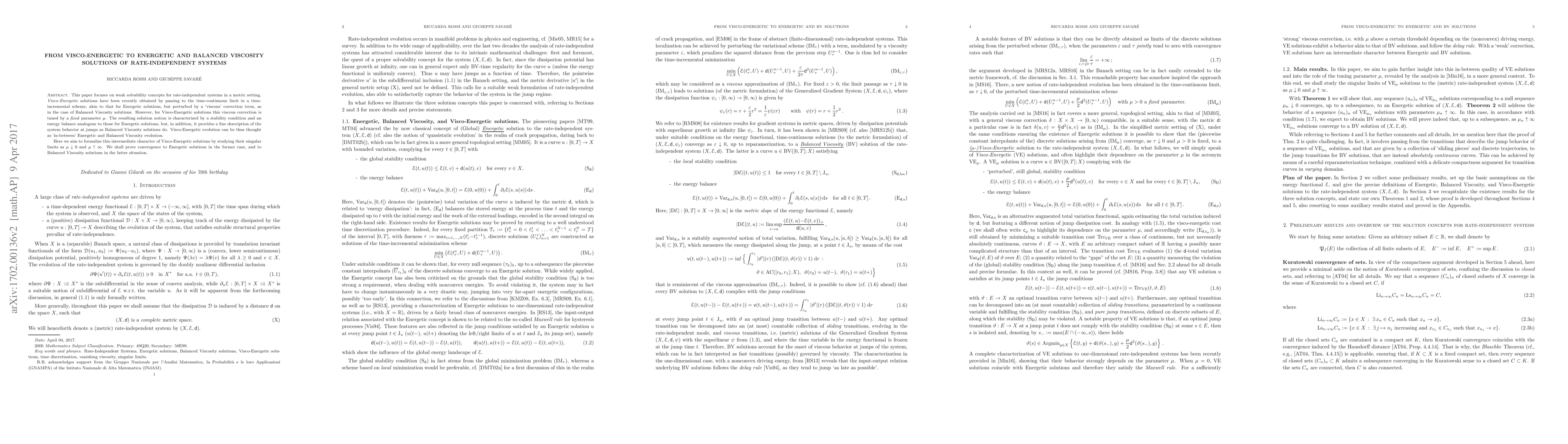 This paper explores weak solvability concepts for rate-independent systems, focusing on the intermediate notion of Visco-Energetic solutions. It studies the singular limits of these solutions as a parameter $\mu$ approaches zero or infinity, proving convergence to Energetic solutions and Balanced Viscosity solutions respectively.
