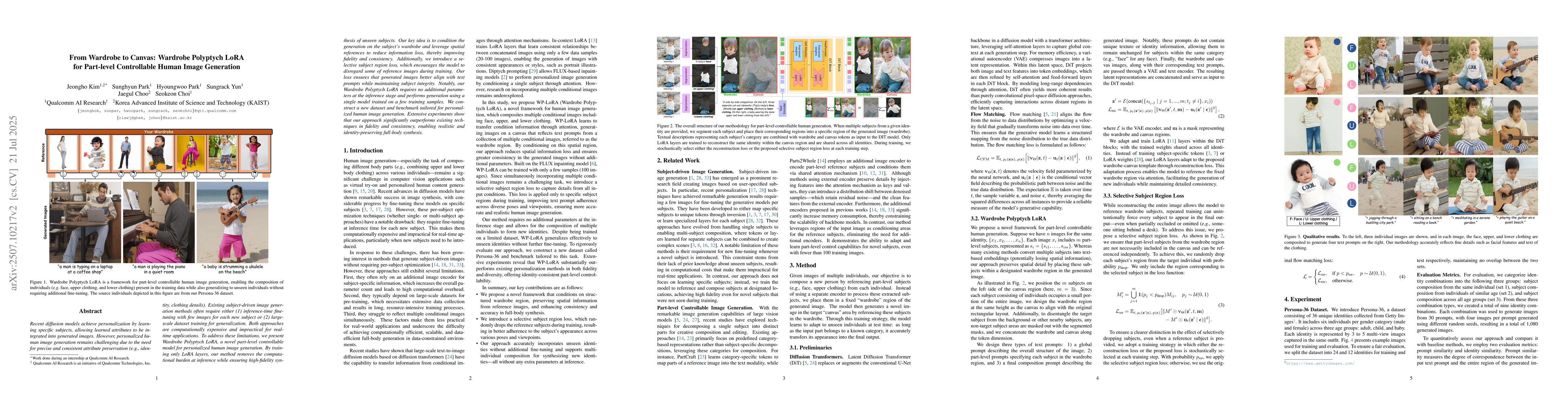 Recent diffusion models achieve personalization by learning specific subjects, allowing learned attributes to be integrated into generated images. However, personalized human image generation remains challenging due to the need for precise and consistent attribute preservation (e.g., identity, clothing details). Existing subject-driven image generation methods often require either (1) inference-time fine-tuning with few images for each new subject or (2) large-scale dataset training for generalization. Both approaches are computationally expensive and impractical for real-time applications. To address these limitations, we present Wardrobe Polyptych LoRA, a novel part-level controllable model for personalized human image generation. By training only LoRA layers, our method removes the computational burden at inference while ensuring high-fidelity synthesis of unseen subjects. Our key idea is to condition the generation on the subject's wardrobe and leverage spatial references to reduce information loss, thereby improving fidelity and consistency. Additionally, we introduce a selective subject region loss, which encourages the model to disregard some of reference images during training. Our loss ensures that generated images better align with text prompts while maintaining subject integrity. Notably, our Wardrobe Polyptych LoRA requires no additional parameters at the inference stage and performs generation using a single model trained on a few training samples. We construct a new dataset and benchmark tailored for personalized human image generation. Extensive experiments show that our approach significantly outperforms existing techniques in fidelity and consistency, enabling realistic and identity-preserving full-body synthesis.