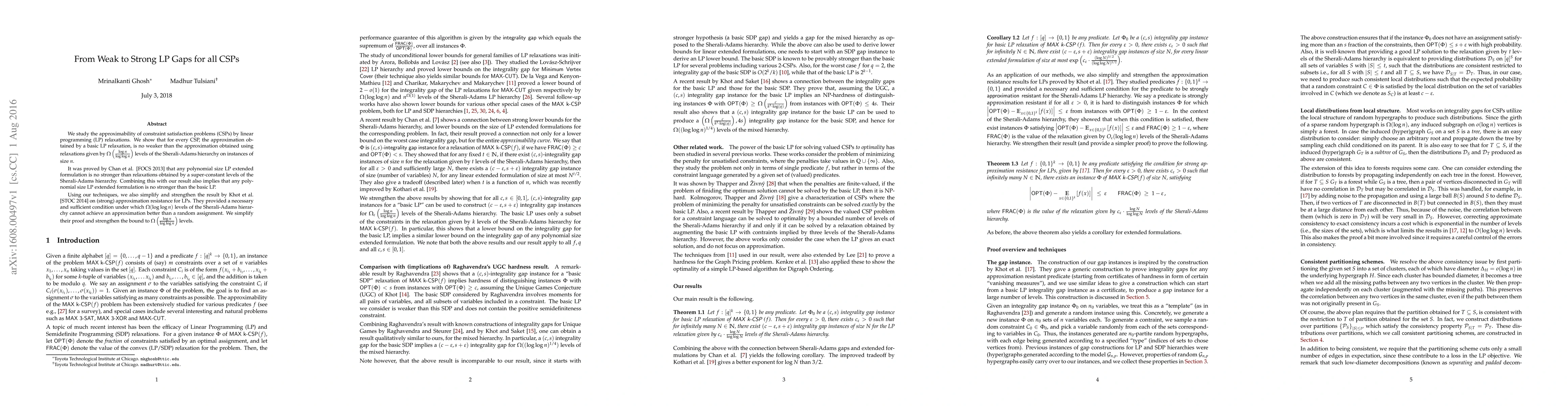 The work extends previous results by Chan et al. and Khot et al., simplifying and strengthening the conditions under which LP relaxations fail to achieve better-than-random approximations.