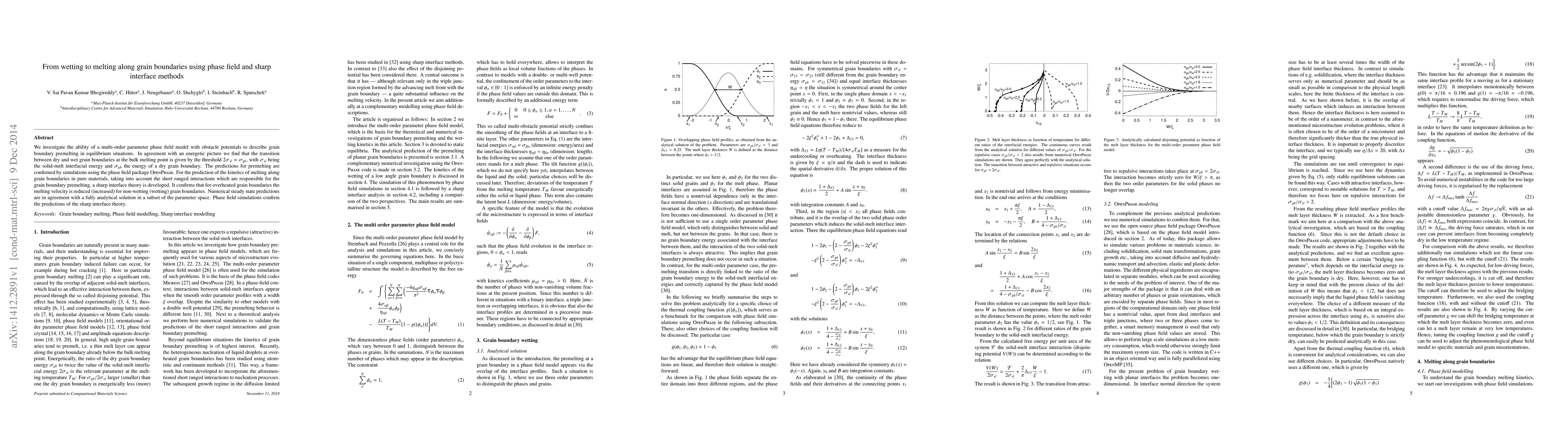 This paper explores the transition from dry to wet grain boundaries and the premelting phenomenon using phase field and sharp interface methods. It finds that the transition occurs when the solid-melt interfacial energy equals the dry grain boundary energy, and confirms these predictions through simulations and analytical solutions.