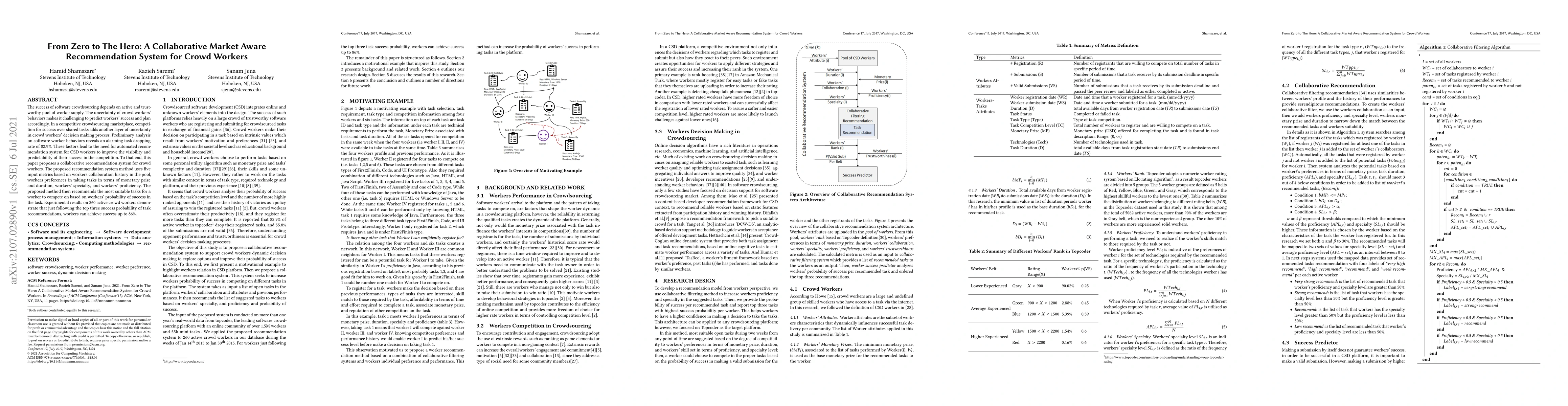 This paper proposes a collaborative recommendation system to enhance the success rate of crowd workers in competitive software crowdsourcing tasks. The system uses metrics like collaboration history, task preferences, specialty, and proficiency to recommend the most suitable tasks, achieving an 86% success rate based on the top three recommendations.