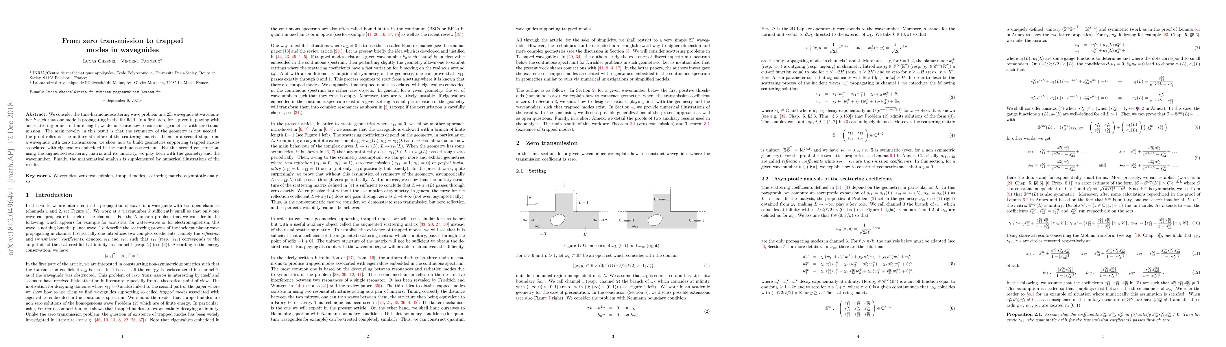 Researchers found that it's possible to create waveguide geometries with zero transmission of waves, without relying on symmetry, using only the properties of the scattering matrix. They also showed how to build these geometries into ones that support trapped modes within the continuous spectrum.