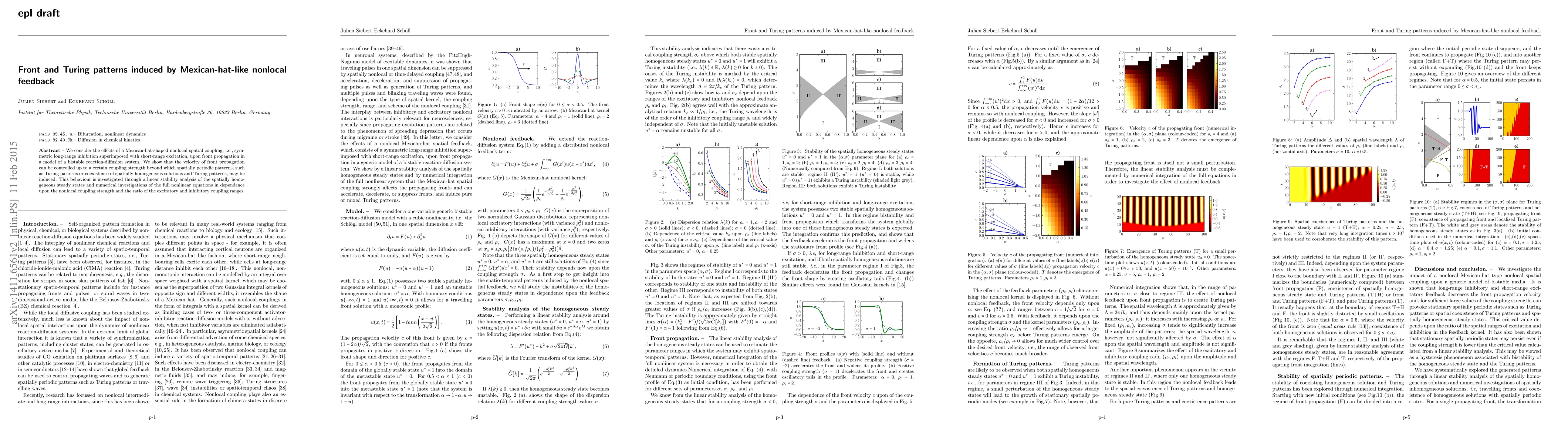 This paper investigates how Mexican-hat-shaped nonlocal feedback influences front propagation in a bistable reaction-diffusion system, demonstrating that it can control front velocity and induce Turing patterns or coexistence patterns at higher coupling strengths. The study combines linear stability analysis and numerical simulations to explore these effects.
