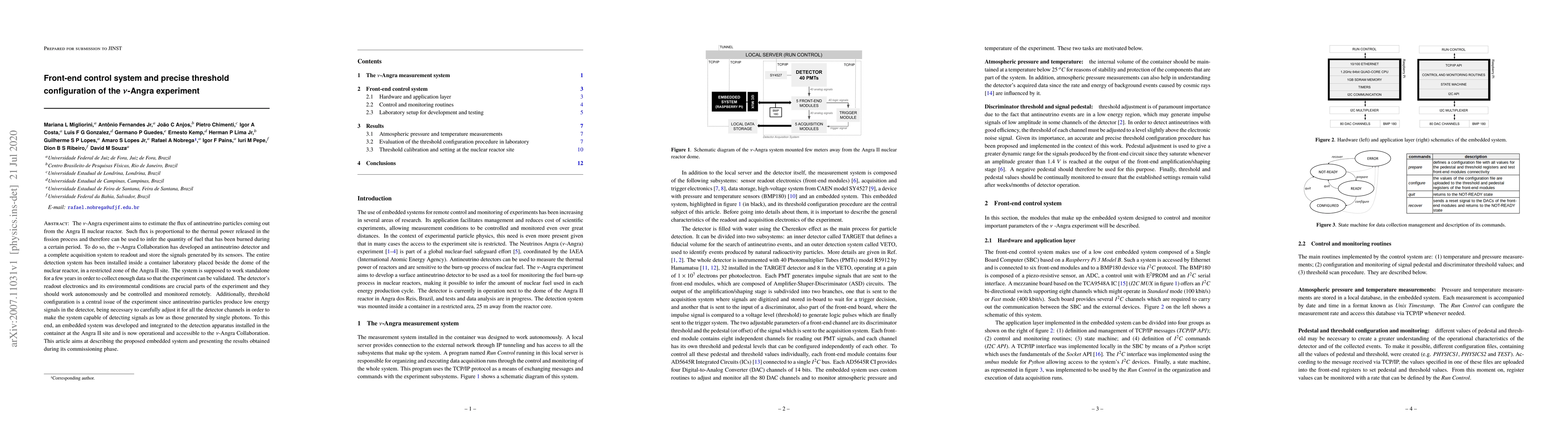 Researchers developed an embedded system to control a v-Angra experiment's detection apparatus, enabling standalone operation and precise threshold configuration for detecting low-energy antineutrino signals.