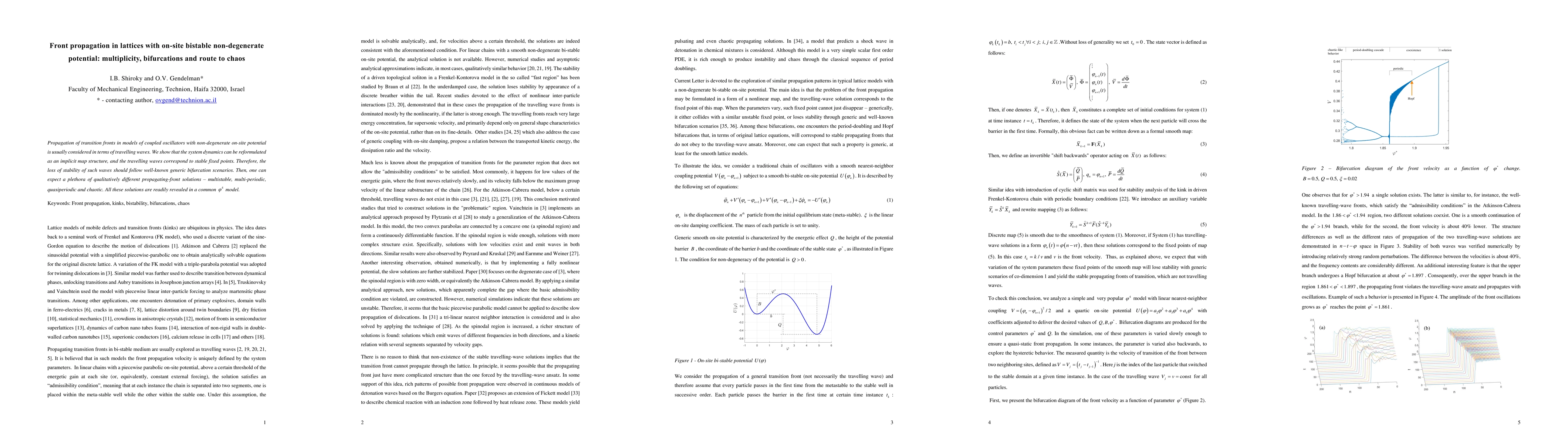 Propagation of transition fronts in models of coupled oscillators with non-degenerate on-site potential is usually considered in terms of travelling waves. We show that the system dynamics can be reformulated as an implicit map structure, and the travelling waves correspond to stable fixed points. Therefore, the loss of stability of such waves should follow well-known generic bifurcation scenarios. Then, one can expect a plethora of qualitatively different propagating-front solutions - multistable, multi-periodic, quasiperiodic and chaotic.