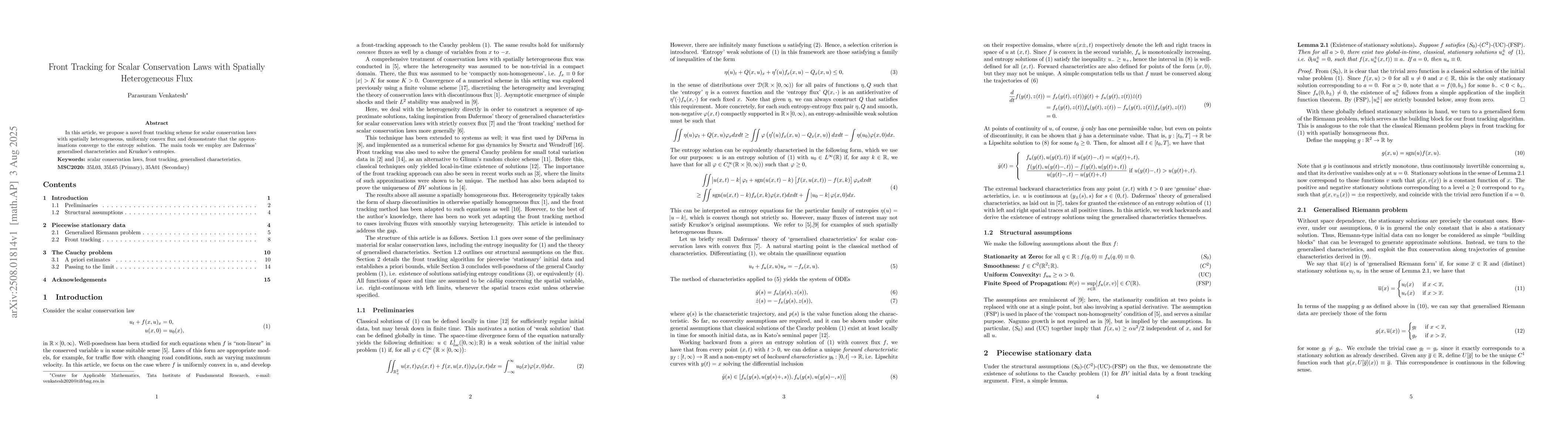 In this article, we propose a novel front tracking scheme for scalar conservation laws with spatially heterogeneous, uniformly convex flux and demonstrate that the approximations converge to the entropy solution. The main tools we employ are Dafermos' generalised characteristics and Kruzkov's entropies.