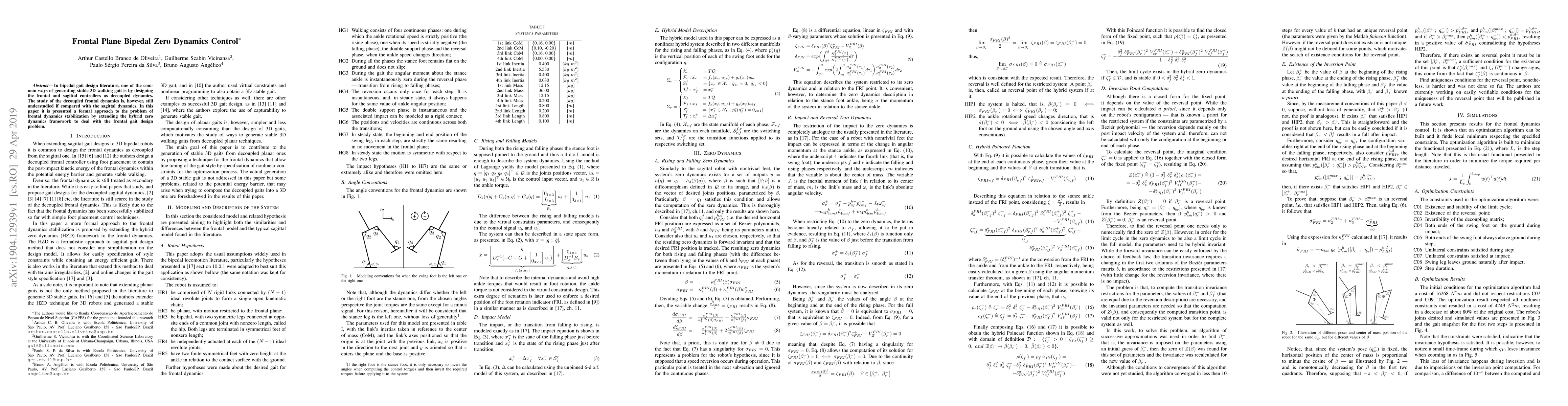 In bipedal gait design literature, one of the common ways of generating stable 3D walking gait is by designing the frontal and sagittal controllers as decoupled dynamics. The study of the decoupled frontal dynamics is, however, still understudied if compared with the sagittal dynamics. In this paper it is presented a formal approach to the problem of frontal dynamics stabilization by extending the hybrid zero dynamics framework to deal with the frontal gait design problem.