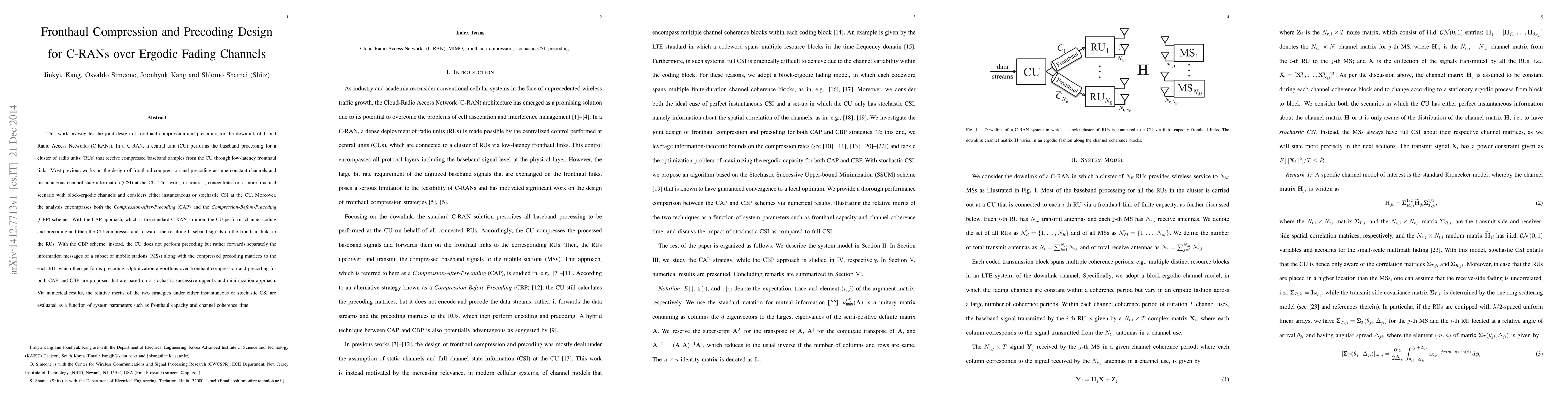 This paper explores the joint design of fronthaul compression and precoding for Cloud Radio Access Networks (C-RANs) under block-ergodic fading channels, evaluating both Compression-After-Precoding (CAP) and Compression-Before-Precoding (CBP) strategies. Optimization algorithms are proposed based on stochastic successive upper-bound minimization, and numerical results compare the performance of CAP and CBP under different channel state information conditions.