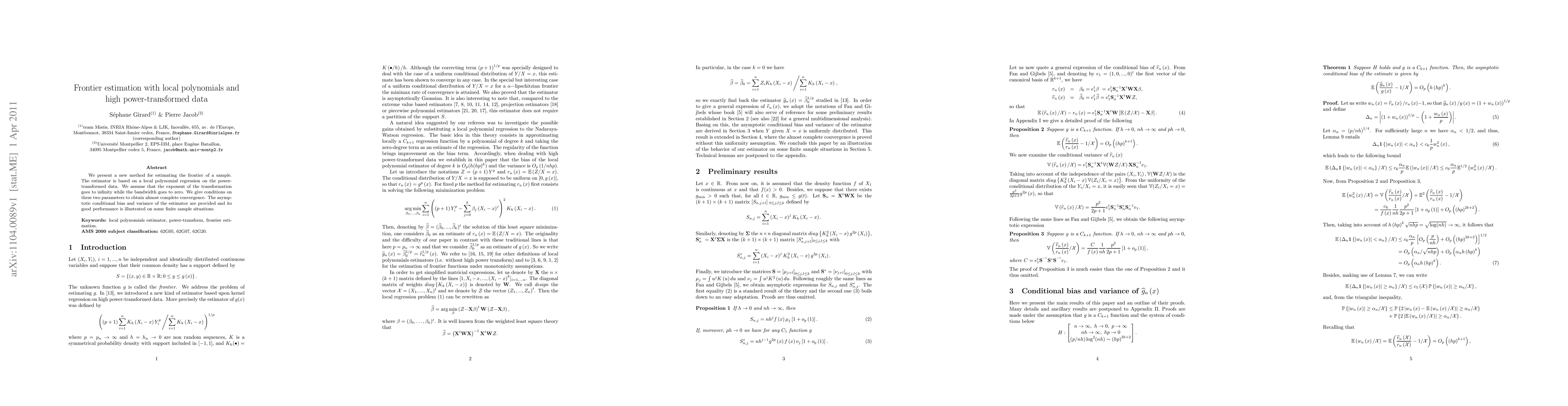 This paper introduces a new frontier estimation method using local polynomial regression on power-transformed data, with the transformation exponent tending to infinity and bandwidth shrinking. The method achieves near-complete convergence under specified conditions and demonstrates good performance in finite sample scenarios.