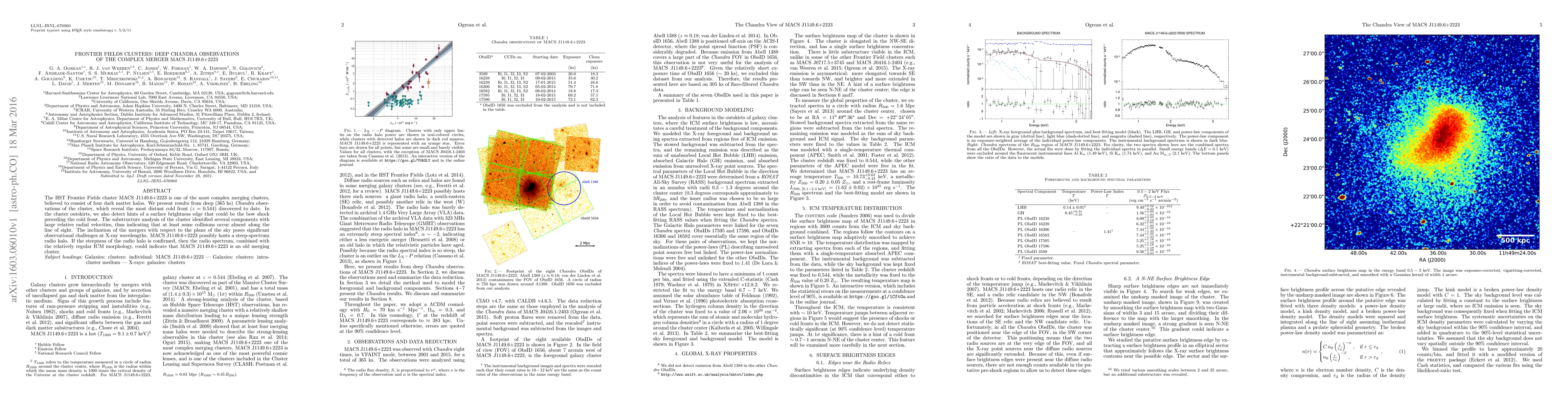 The HST Frontier Fields cluster MACS J1149.6+2223 is one of the most complex merging clusters, believed to consist of four dark matter halos. We present results from deep (365 ks) Chandra observations of the cluster, which reveal the most distant cold front (z=0.544) discovered to date. In the cluster outskirts, we also detect hints of a surface brightness edge that could be the bow shock preceding the cold front. The substructure analysis of the cluster identified several components with large relative radial velocities, thus indicating that at least some collisions occur almost along the line of sight. The inclination of the mergers with respect to the plane of the sky poses significant observational challenges at X-ray wavelengths. MACS J1149.6+2223 possibly hosts a steep-spectrum radio halo. If the steepness of the radio halo is confirmed, then the radio spectrum, combined with the relatively regular ICM morphology, could indicate that MACS J1149.6+2223 is an old merging cluster.