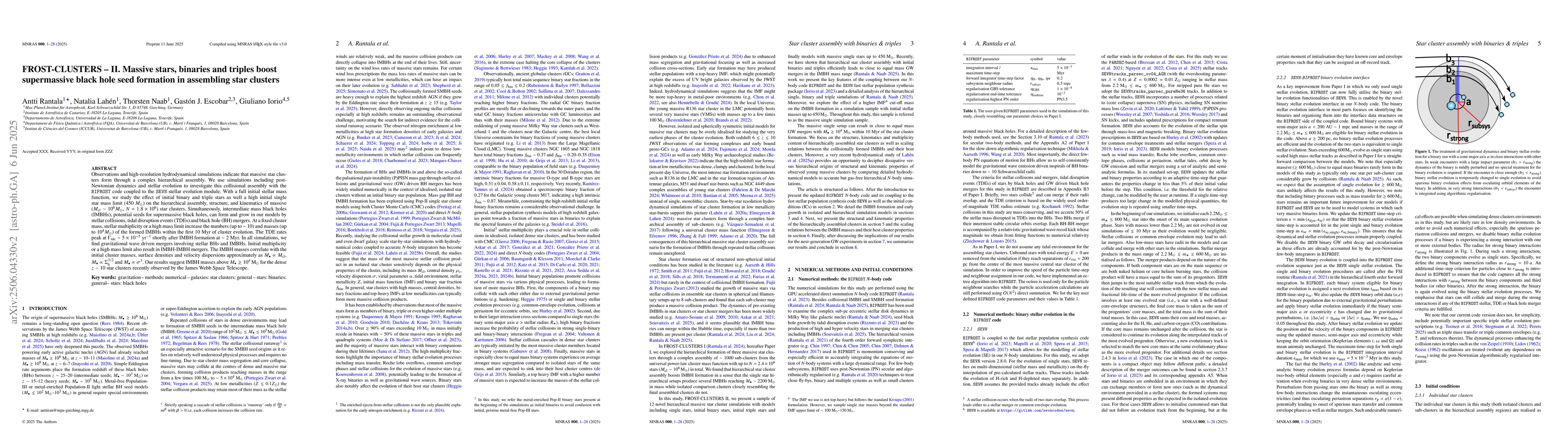 The research utilizes high-resolution hydrodynamical simulations with the \bifrost{} code coupled to the \sevn{} stellar evolution module, studying the collisional assembly of massive star clusters with initial binary and triple stars.