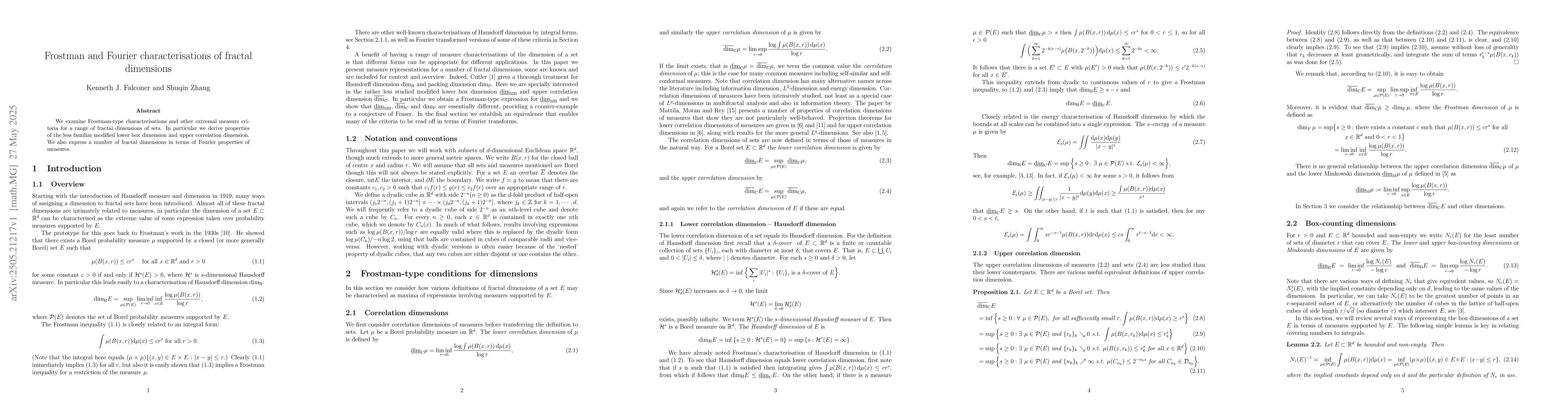 The paper presents novel Frostman and Fourier characterisations of fractal dimensions, specifically for modified lower box and upper correlation dimensions.