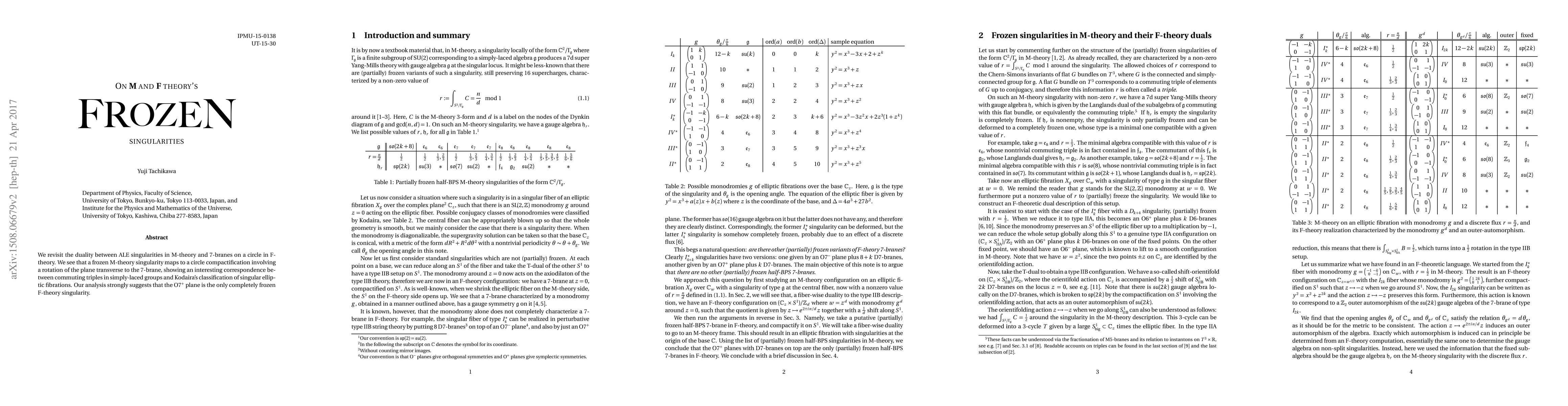 We revisit the duality between ALE singularities in M-theory and 7-branes on a circle in F-theory. We see that a frozen M-theory singularity maps to a circle compactification involving a rotation of the plane transverse to the 7-brane, showing an interesting correspondence between commuting triples in simply-laced groups and Kodaira's classification of singular elliptic fibrations. Our analysis strongly suggests that the O7+ plane is the only completely frozen F-theory singularity.
