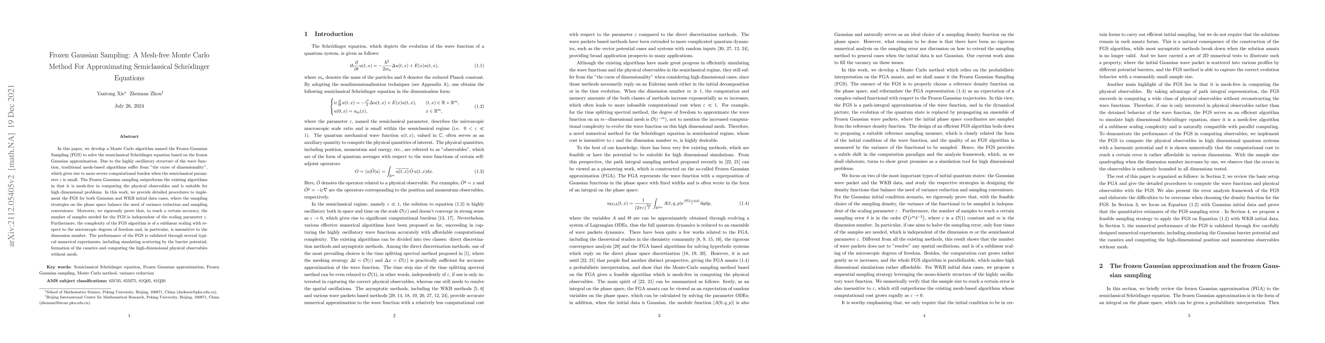 A new Monte Carlo method called Frozen Gaussian Sampling (FGS) is proposed to solve the semiclassical Schr"odinger equation, offering a mesh-free approach that overcomes the curse of dimensionality and scales sublinearly with microscopic degrees of freedom.