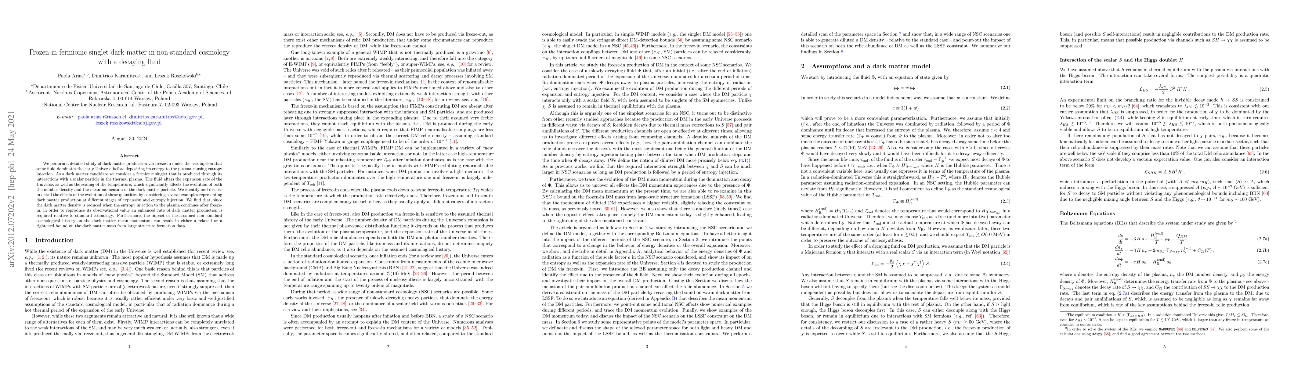 This research explores dark matter production via freeze-in, considering a fermionic singlet interacting with a scalar particle in a thermal plasma. In a non-standard cosmology with a decaying fluid, the study finds that an enhanced production rate is needed to match observational dark matter density. The fluid's impact on the universe's expansion and plasma temperature alters dark matter number density and momentum, potentially relaxing or tightening bounds on dark matter mass from large-scale structure formation data.