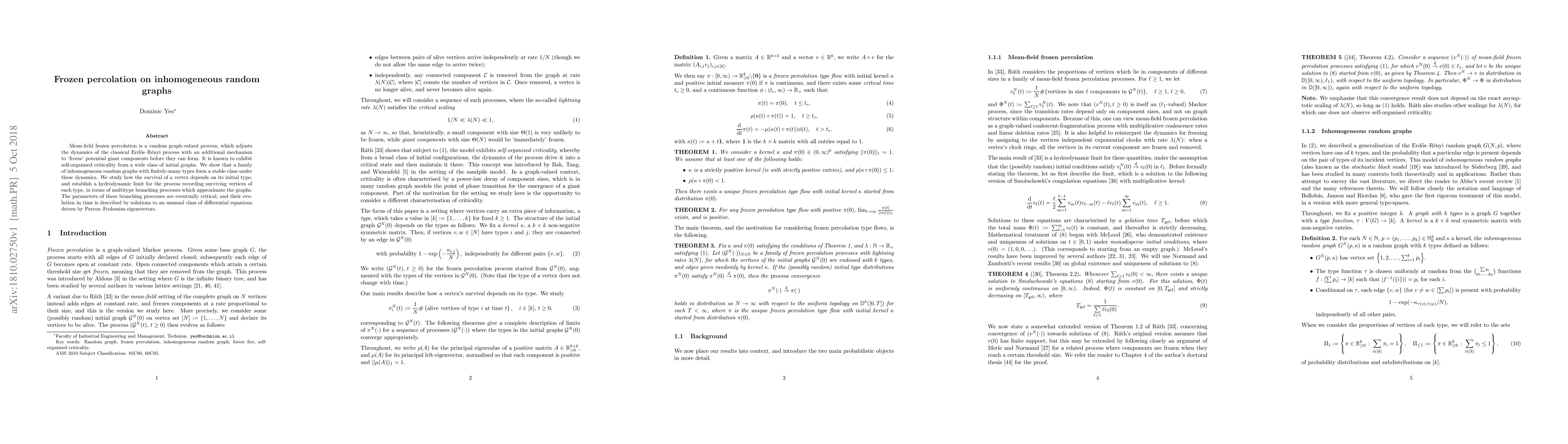 Researchers studied how a process called frozen percolation behaves on inhomogeneous random graphs, finding that it leads to stable classes of graphs with different vertex types and predicting the survival of vertices based on their initial type.
