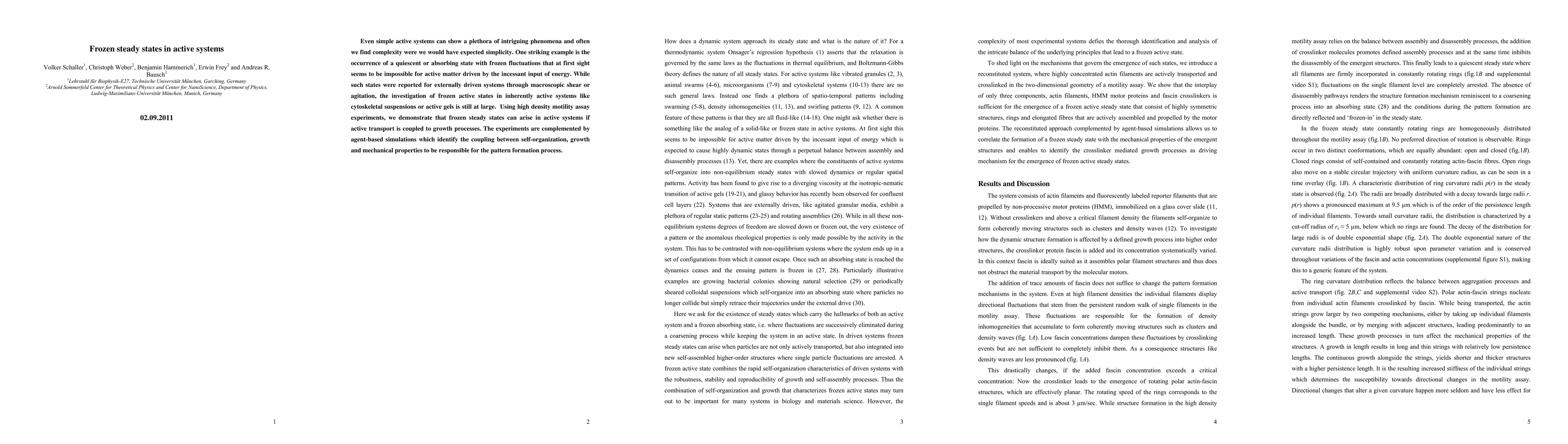 Researchers discover frozen steady states in active systems, where energy input leads to stable but fluctuating behavior, and find that coupling active transport to growth processes is key to their formation.