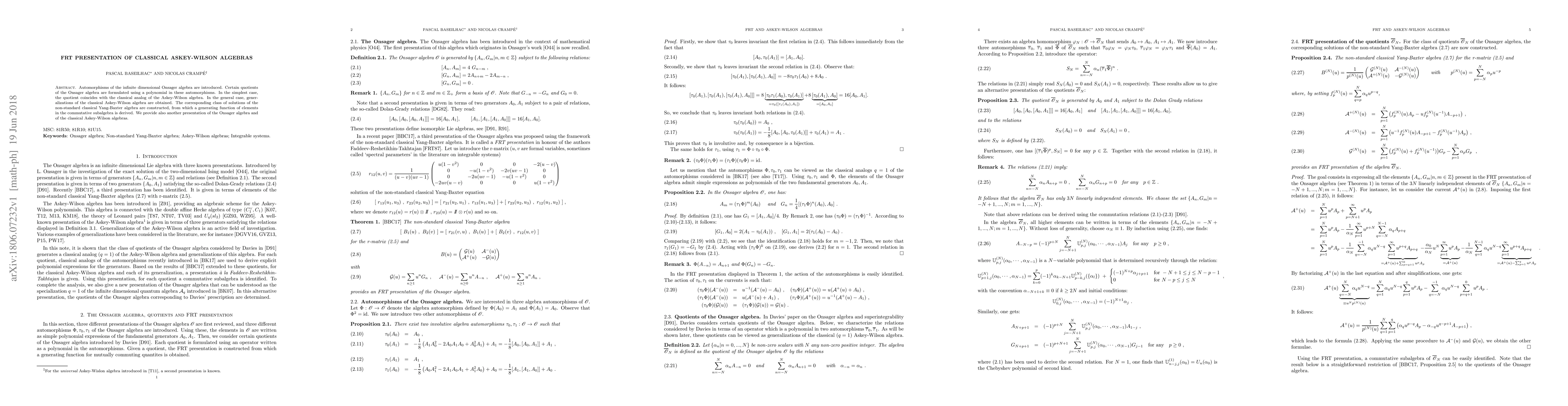 This paper introduces automorphisms of the Onsager algebra and formulates quotients leading to classical Askey-Wilson algebras and their generalizations. It constructs solutions of the non-standard classical Yang-Baxter equation and provides a new presentation of the Onsager and Askey-Wilson algebras.