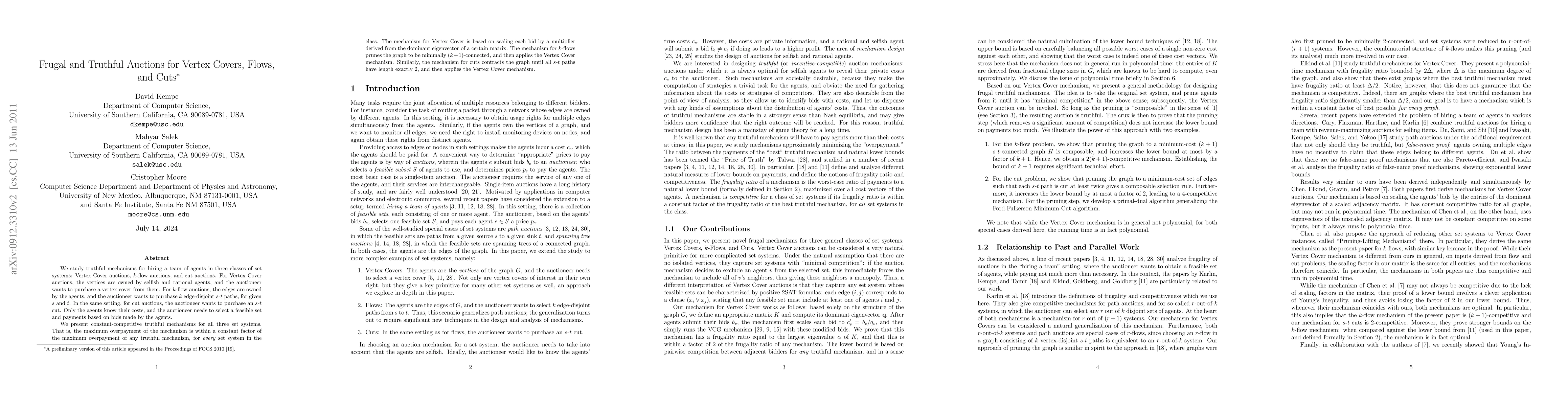 This paper presents constant-competitive truthful auction mechanisms for Vertex Cover, k-flow, and cut problems, ensuring minimal overpayment compared to any other truthful mechanism. The Vertex Cover mechanism scales bids using the dominant eigenvector, while k-flow and cut mechanisms adapt the Vertex Cover approach through graph pruning and contraction.