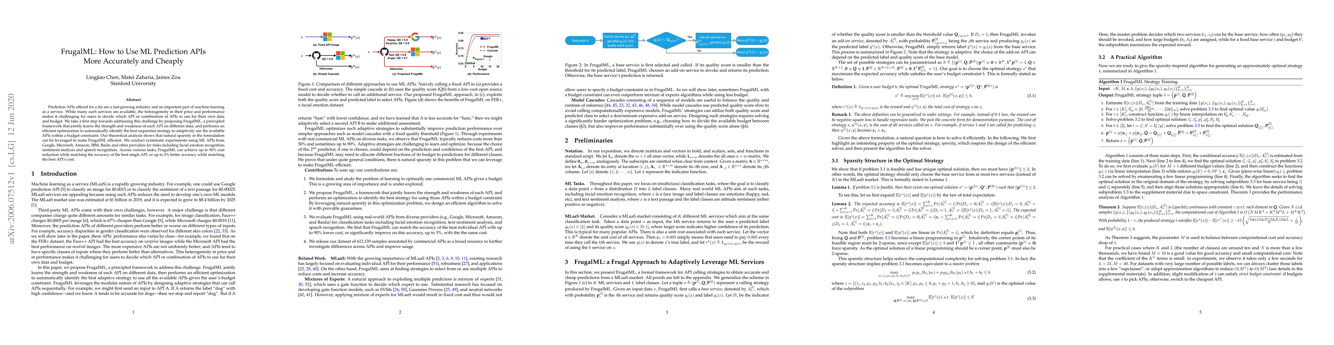 Prediction APIs offered for a fee are a fast-growing industry and an important part of machine learning as a service. While many such services are available, the heterogeneity in their price and performance makes it challenging for users to decide which API or combination of APIs to use for their own data and budget. We take a first step towards addressing this challenge by proposing FrugalML, a principled framework that jointly learns the strength and weakness of each API on different data, and performs an efficient optimization to automatically identify the best sequential strategy to adaptively use the available APIs within a budget constraint. Our theoretical analysis shows that natural sparsity in the formulation can be leveraged to make FrugalML efficient. We conduct systematic experiments using ML APIs from Google, Microsoft, Amazon, IBM, Baidu and other providers for tasks including facial emotion recognition, sentiment analysis and speech recognition. Across various tasks, FrugalML can achieve up to 90% cost reduction while matching the accuracy of the best single API, or up to 5% better accuracy while matching the best API's cost.