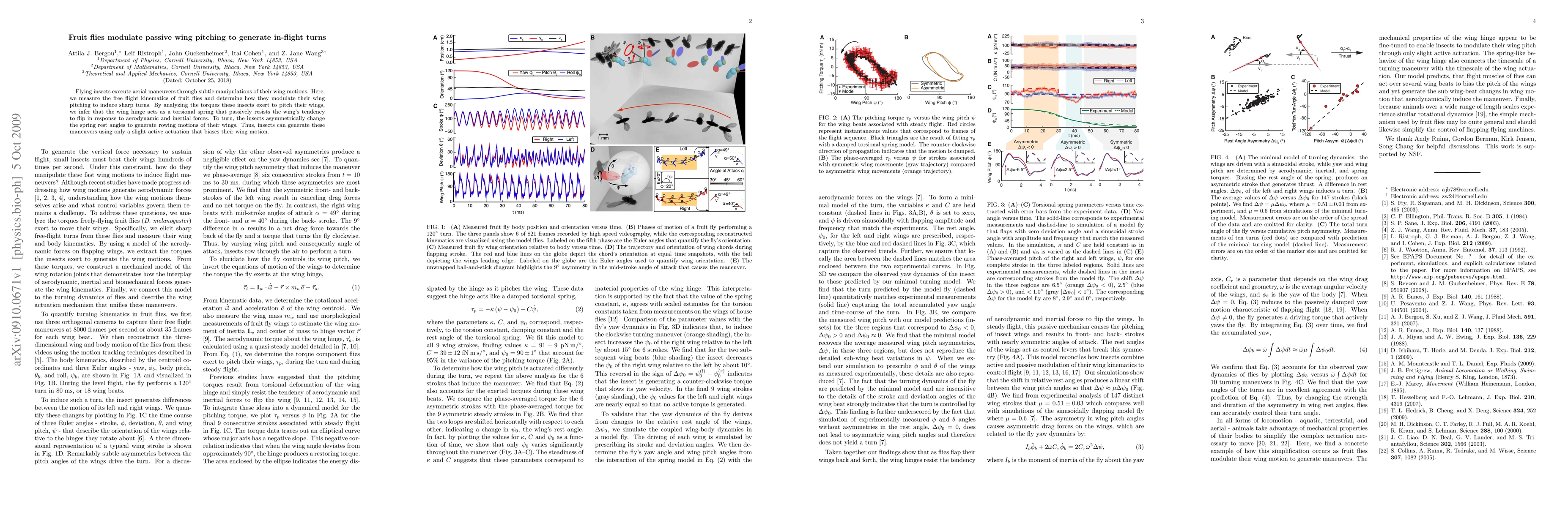 Fruit flies utilize passive wing pitching to execute sharp turns by modulating the wing hinge angles, which act as a torsional spring, allowing minimal active actuation to generate effective rowing motions. This subtle manipulation of wing motion enables precise aerial maneuvers.