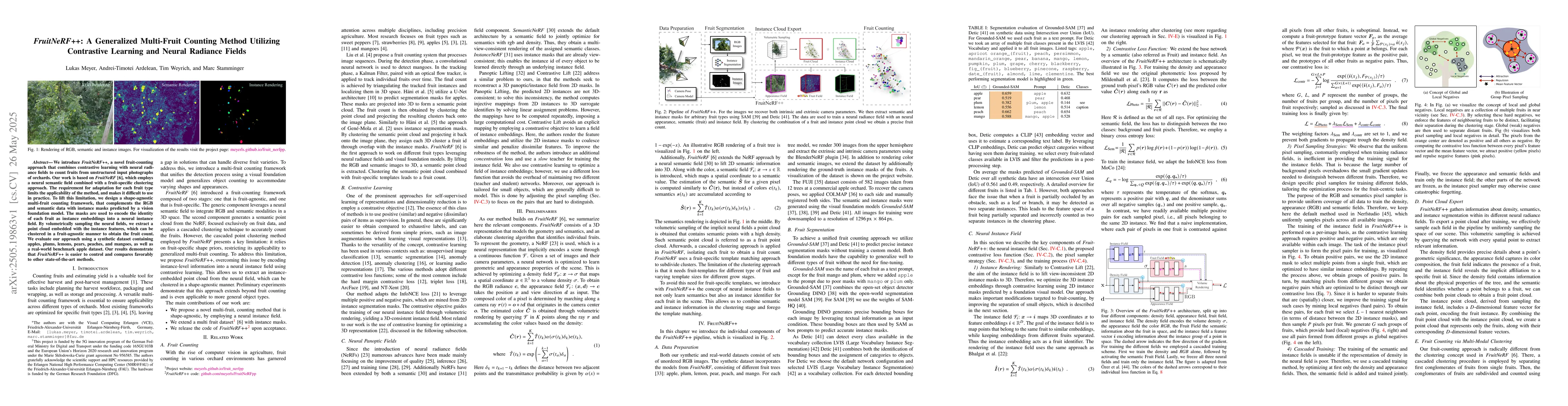 The research introduces FruitNeRF++, a fruit-counting approach that merges contrastive learning with neural radiance fields. It builds upon FruitNeRF, employing a neural semantic field and fruit-specific clustering, but extends it to be shape-agnostic, utilizing instance masks from vision foundation models to encode fruit identities into a neural instance field for clustering.