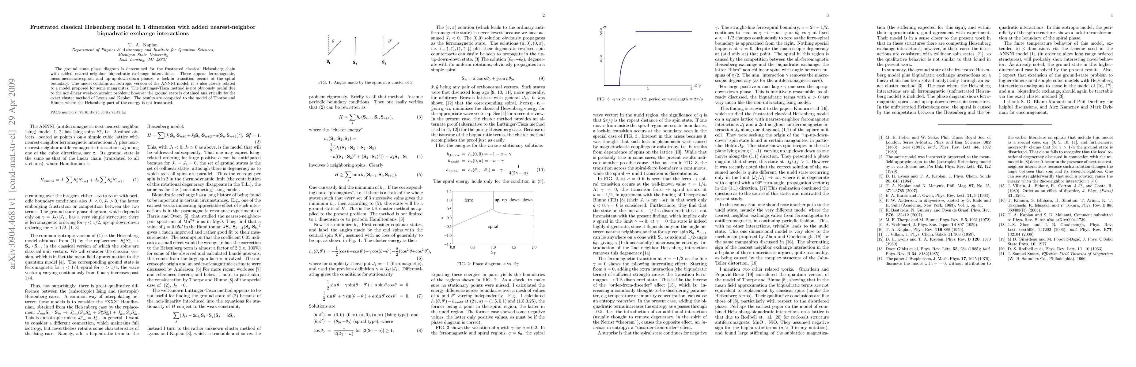 The ground state phase diagram is determined for the frustrated classical Heisenberg chain with added nearest-neighbor biquadratic exchange interactions. There appear ferromagnetic, incommensurate-spiral, and up-up-down-down phases; a lock-in transition occurs at the spiral boundary. The model contains an isotropic version of the ANNNI model; it is also closely related to a model proposed for some manganites. The Luttinger-Tisza method is not obviously useful due to the non-linear weak-constraint problem; however the ground state is obtained analytically by the exact cluster method of Lyons and Kaplan. The results are compared to the model of Thorpe and Blume, where the Heisenberg part of the energy is not frustrated.