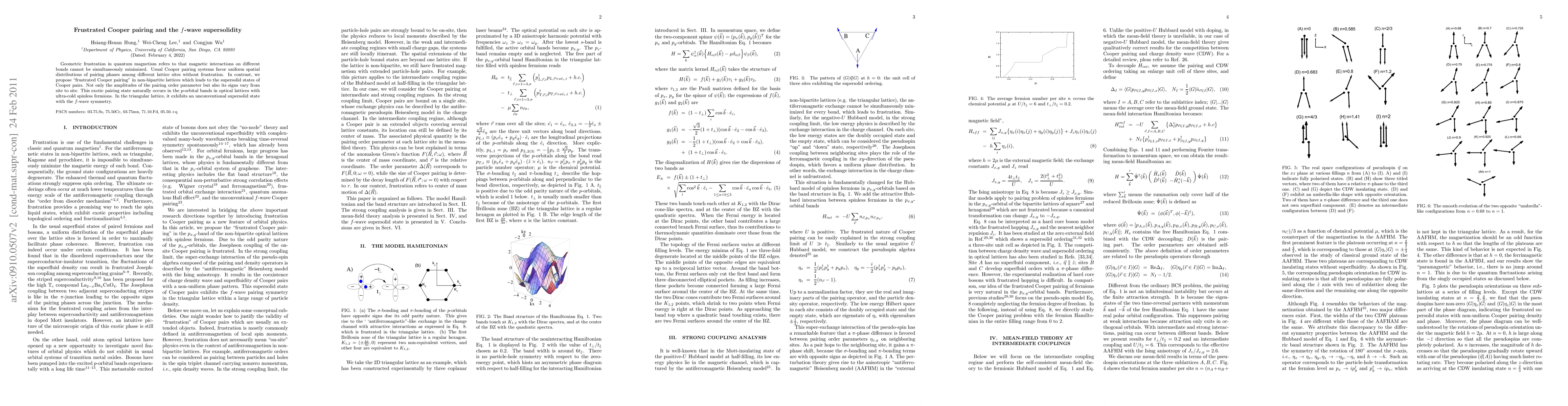 This paper explores "frustrated Cooper pairing" in non-bipartite lattices, leading to unconventional supersolid states with non-uniform Cooper pair distributions and $f$-wave symmetry, observed in $p$-orbital bands of ultra-cold spinless fermions in optical lattices.