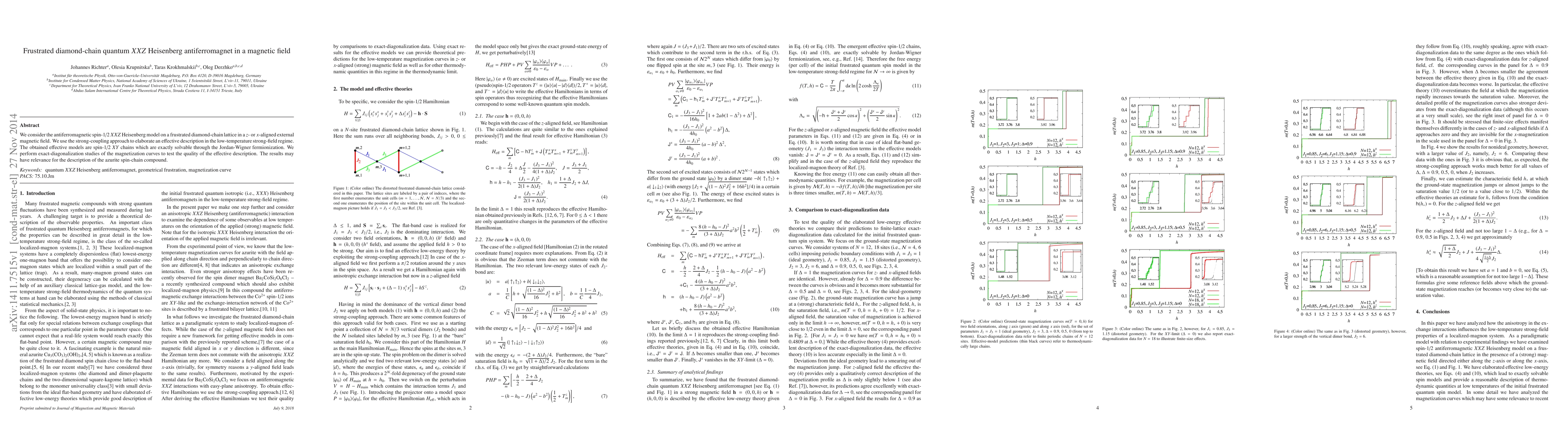 This paper investigates the antiferromagnetic spin-1/2 $XXZ$ Heisenberg model on a frustrated diamond-chain lattice under magnetic fields, deriving effective spin-1/2 $XY$ chains using a strong-coupling approach. Exact-diagonalization studies of magnetization curves validate the effective model's accuracy, potentially aiding in the description of the azurite spin-chain compound.
