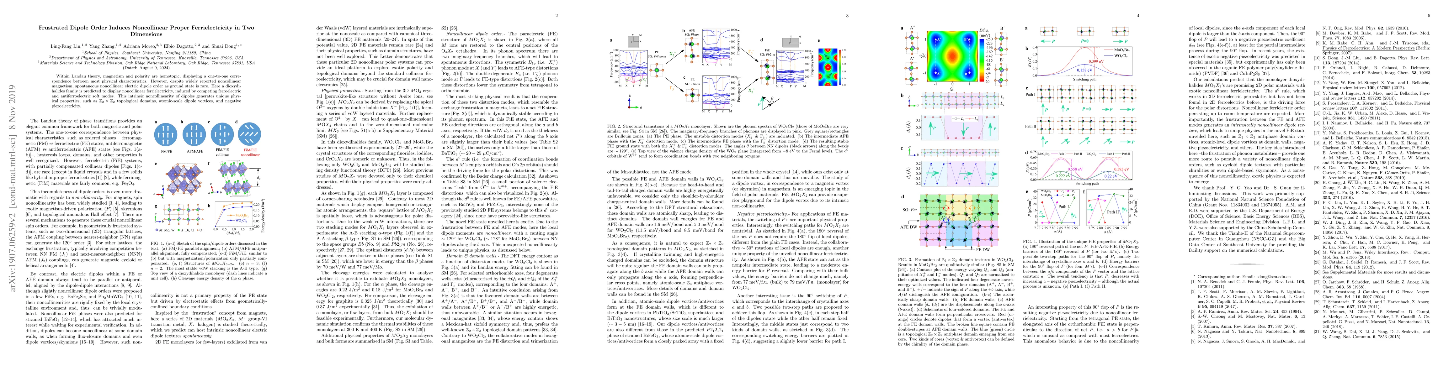 Within Landau theory, magnetism and polarity are homotopic, displaying a one-to-one correspondence between most physical characteristics. However, despite widely reported noncollinear magnetism, spontaneous noncollinear electric dipole order as ground state is rare. Here a dioxydihalides family is predicted to display noncollinear ferrielectricity, induced by competing ferroelectric and antiferroelectric soft modes. This intrinsic noncollinearity of dipoles generates unique physical properties, such as $\mathbb{Z}_2\times\mathbb{Z}_2$ topological domains, atomic-scale dipole vortices, and negative piezoelectricity.