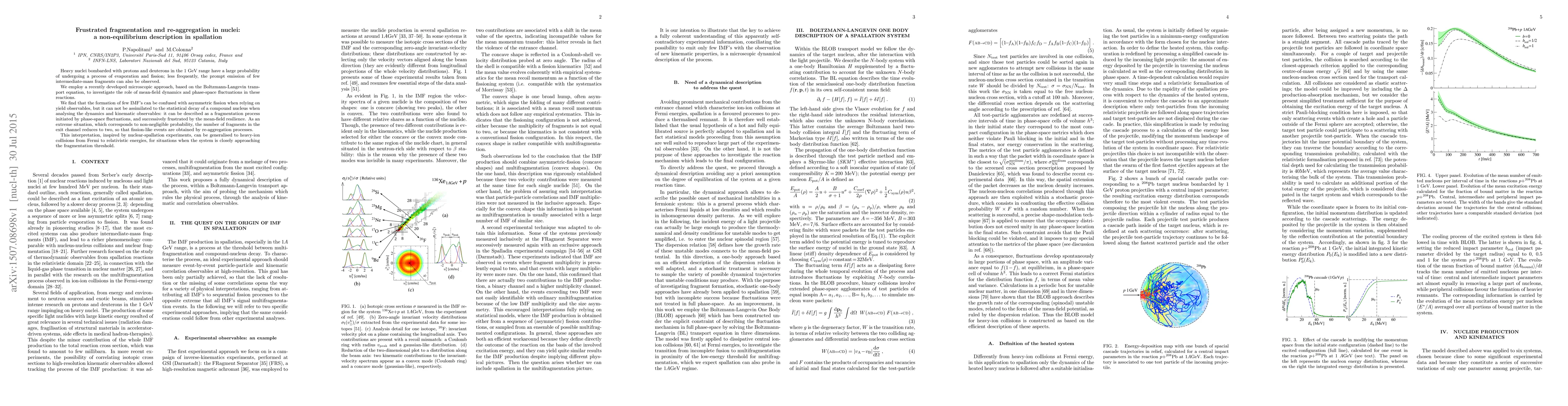 Heavy nuclei bombarded with protons and deuterons in the 1 GeV range have a large probability of undergoing a process of evaporation and fission; less frequently, the prompt emission of few intermediate-mass fragments can also be observed. We employ a recently developed microscopic approach, based on the Boltzmann-Langevin transport equation, to investigate the role of mean-field dynamics and phase-space fluctuations in these reactions. We find that the formation of few IMF's can be confused with asymmetric fission when relying on yield observables, but it can not be assimilated to the statistical decay of a compound nucleus when analysing the dynamics and kinematic observables: it can be described as a fragmentation process initiated by phase-space fluctuations, and successively frustrated by the mean-field resilience. As an extreme situation, which corresponds to non-negligible probability, the number of fragments in the exit channel reduces to two, so that fission-like events are obtained by re-aggregation processes. This interpretation, inspired by nuclear-spallation experiments, can be generalised to heavy-ion collisions from Fermi to relativistic energies, for situations when the system is closely approaching the fragmentation threshold.