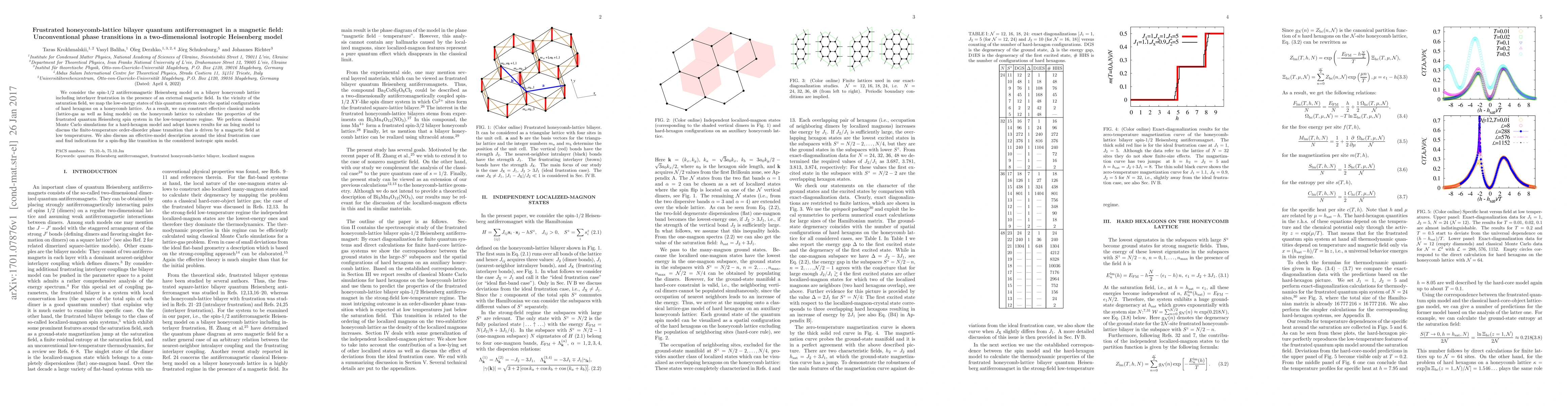 This paper investigates the spin-1/2 Heisenberg model on a frustrated bilayer honeycomb lattice under an external magnetic field, revealing unconventional phase transitions. Classical simulations of hard hexagon and Ising models elucidate the low-temperature behavior, indicating a spin-flop-like transition near the saturation field.