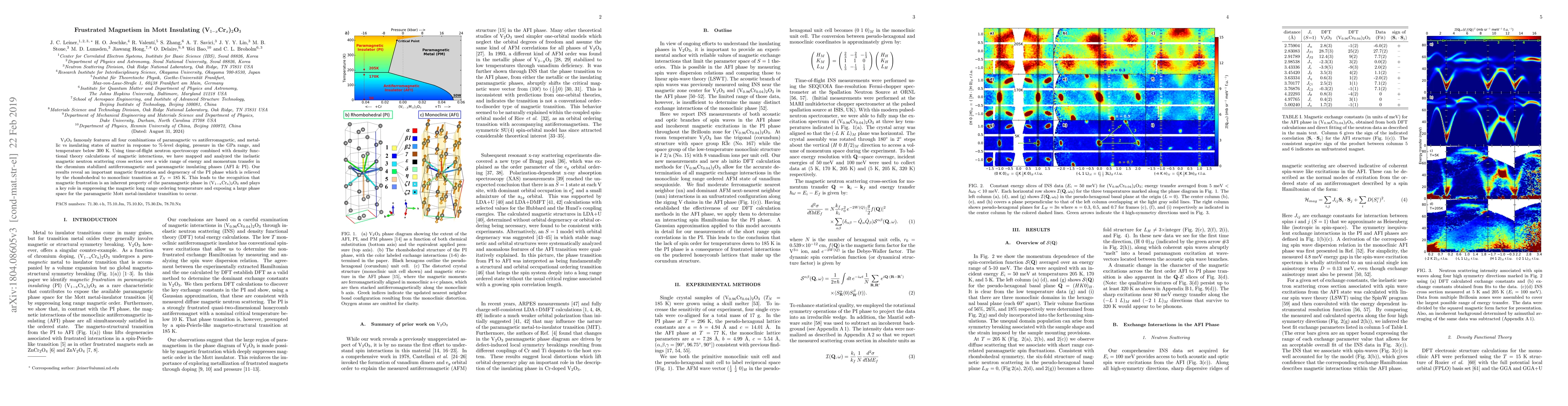 V2O3 famously features all four combinations of paramagnetic vs antiferromagnetic, and metallic vs insulating states of matter in response to %-level doping, pressure in the GPa range, and temperature below 300 K. Using time-of-flight neutron spectroscopy combined with density functional theory calculations of magnetic interactions, we have mapped and analyzed the inelastic magnetic neutron scattering cross section over a wide range of energy and momentum transfer in the chromium stabilized antiferromagnetic and paramagnetic insulating phases (AFI & PI). Our results reveal an important magnetic frustration and degeneracy of the PI phase which is relieved by the rhombohedral to monoclinic transition at $T_N=185$ K due to a significant magneto-elastic coupling. This leads to the recognition that magnetic frustration is an inherent property of the paramagnetic phase in $\rm (V_{1-x}Cr_x)_2O_3$ and plays a key role in suppressing the magnetic long range ordering temperature and exposing a large phase space for the paramagnetic Mott metal-insulator transition to occur.