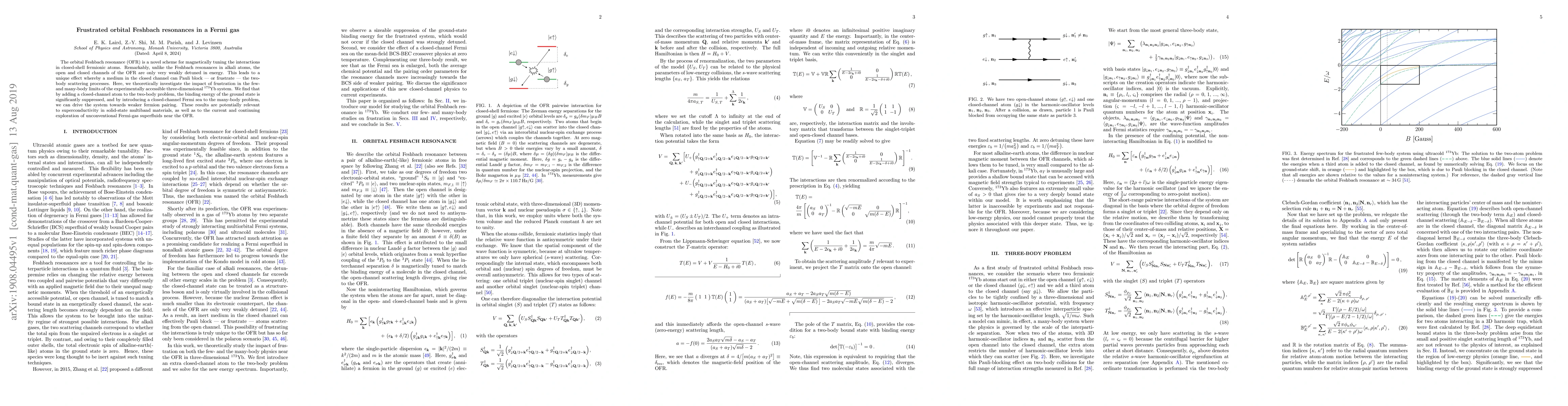 This paper investigates frustrated orbital Feshbach resonances in a Fermi gas, demonstrating how a closed-channel medium can suppress binding energy and weaken fermion pairing in both few- and many-body systems. The findings have implications for superconductivity in multiband materials and the study of unconventional Fermi-gas superfluids.