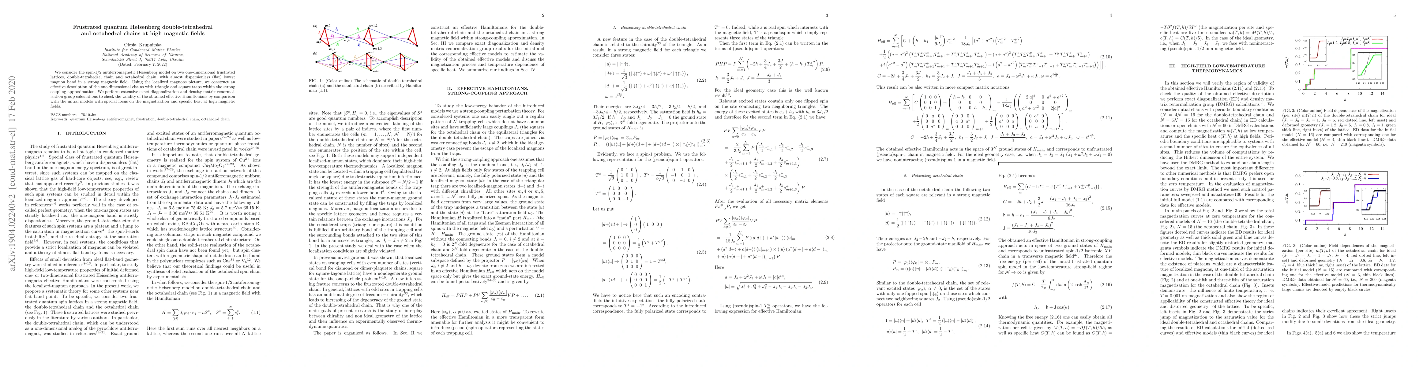 This paper investigates the spin-1/2 Heisenberg model on frustrated double-tetrahedral and octahedral chains under strong magnetic fields, constructing effective Hamiltonians using localized magnons. The study validates these models through extensive exact diagonalization and density matrix renormalization group calculations, focusing on magnetization and specific heat behavior.