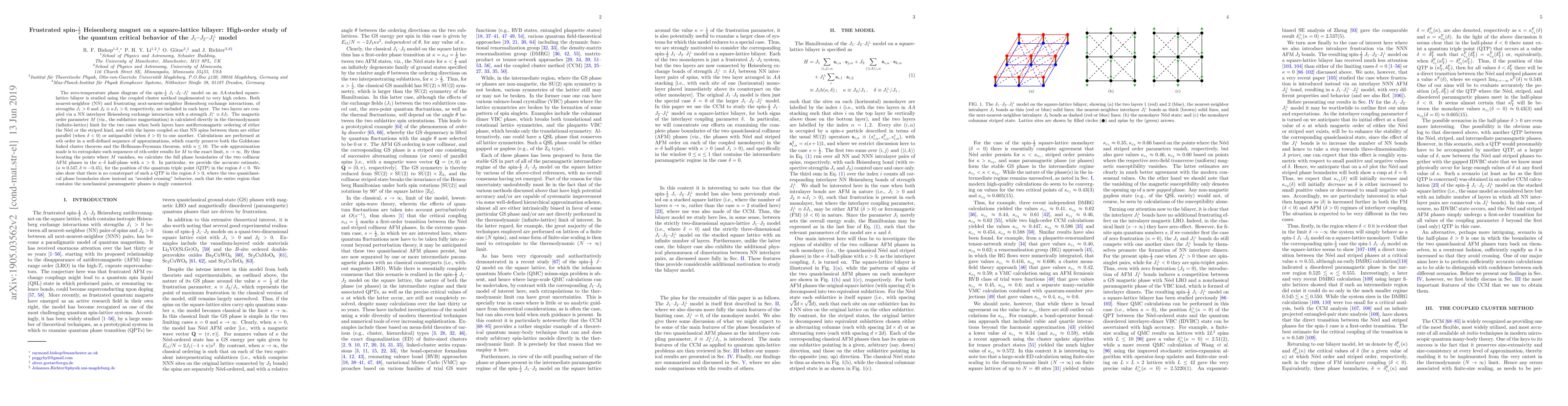 This paper investigates the quantum critical behavior of the $J_{1}$--$J_{2}$--$J_{1}^{\perp}$ model on an $AA$-stacked square-lattice bilayer using high-order coupled cluster methods. It identifies the phase boundaries and accurately estimates the quantum triple point at ($\kappa \approx 0.547,\delta \approx -0.45$) in the $\delta < 0$ region, with no such triple point existing in the $\delta > 0$ region.