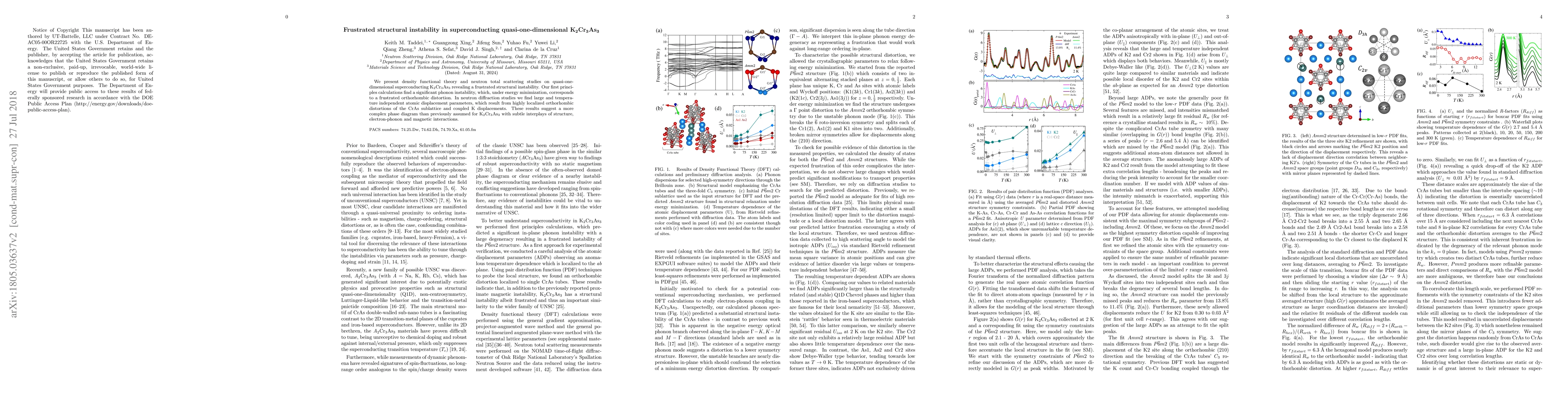 We present neutron total scattering and density functional theory studies on quasi-one-dimensional superconducting K$_2$Cr$_3$As$_3$ revealing a frustrated structural instability. Our first principles calculations find a significant phonon instability which, under energy minimization, corresponds to a frustrated orthorhombic distortion. In diffraction studies we find large and temperature independent atomic displacement parameters which pair distribution analyses confirms and shows as resulting from highly localized orthorhombic distortions of the CrAs sublattice and coupled K displacements. These results suggest a far more complex phase diagram than previously assumed for this unusual superconductor with the likelihood of subtle interplays of structure, electron-phonon and magnetic interactions.