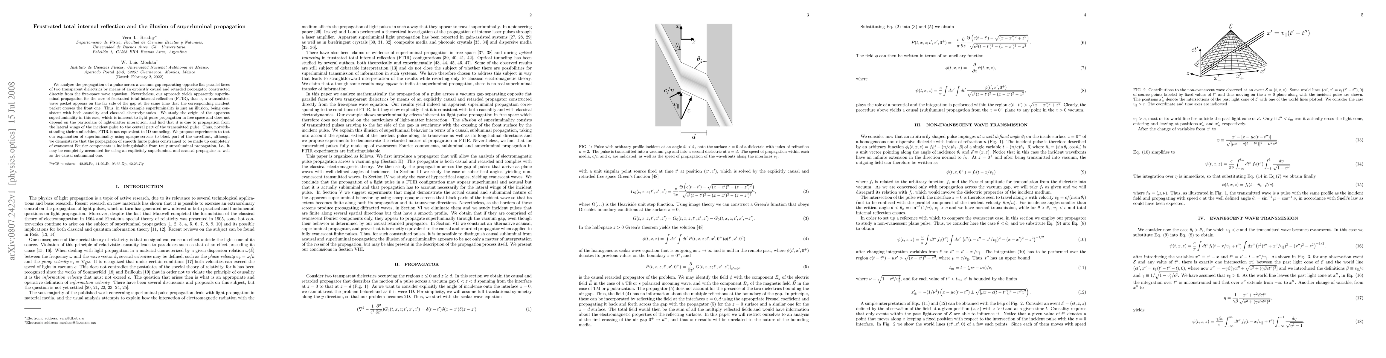 This paper investigates the phenomenon of frustrated total internal reflection (FTIR) where a light pulse appears to propagate faster than light across a vacuum gap, an illusion consistent with causality and classical electrodynamics. The apparent superluminality is attributed to the propagation from the pulse's lateral wings to its central part, not dependent on light-matter interaction specifics.