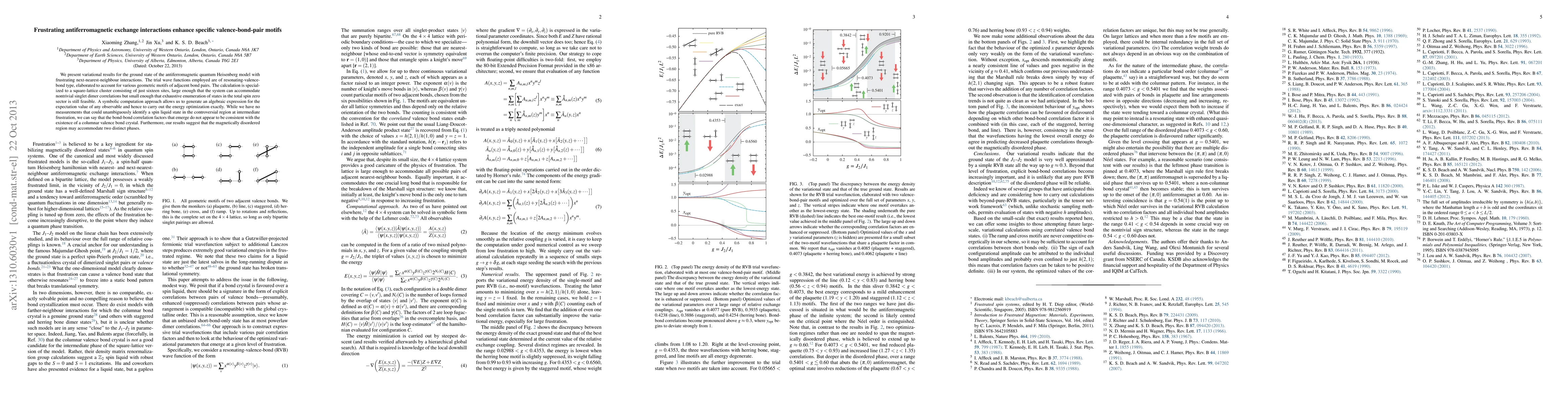 Researchers study the effects of frustrating antiferromagnetic interactions on a quantum Heisenberg model, finding that these interactions enhance specific valence-bond-pair motifs, potentially leading to two distinct phases in the magnetically disordered region.
