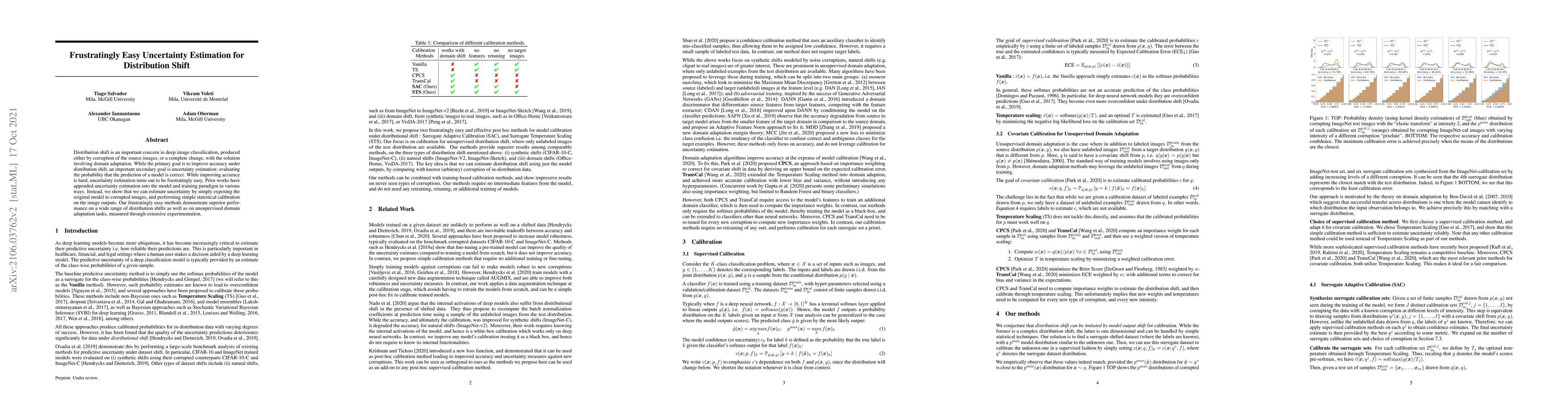 Distribution shift is an important concern in deep image classification, produced either by corruption of the source images, or a complete change, with the solution involving domain adaptation. While the primary goal is to improve accuracy under distribution shift, an important secondary goal is uncertainty estimation: evaluating the probability that the prediction of a model is correct. While improving accuracy is hard, uncertainty estimation turns out to be frustratingly easy. Prior works have appended uncertainty estimation into the model and training paradigm in various ways. Instead, we show that we can estimate uncertainty by simply exposing the original model to corrupted images, and performing simple statistical calibration on the image outputs. Our frustratingly easy methods demonstrate superior performance on a wide range of distribution shifts as well as on unsupervised domain adaptation tasks, measured through extensive experimentation.