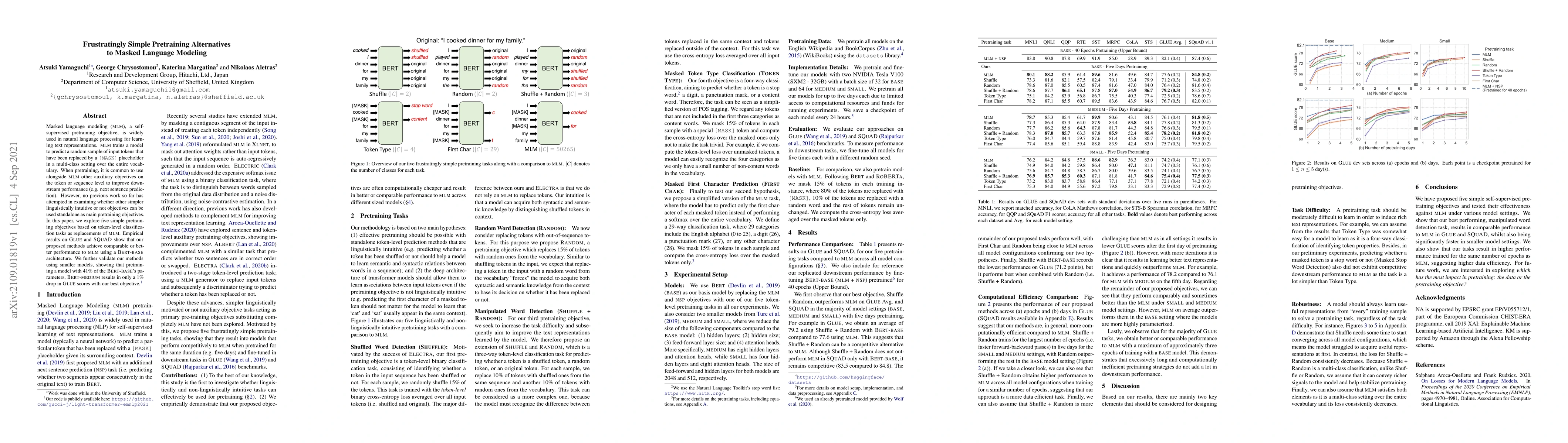 This paper investigates simple, alternative pretraining objectives to Masked Language Modeling (MLM) for natural language processing, proposing five new token-level classification tasks. Empirical results demonstrate that these alternatives achieve comparable or superior performance to MLM, especially when using smaller models like BERT-MEDIUM.