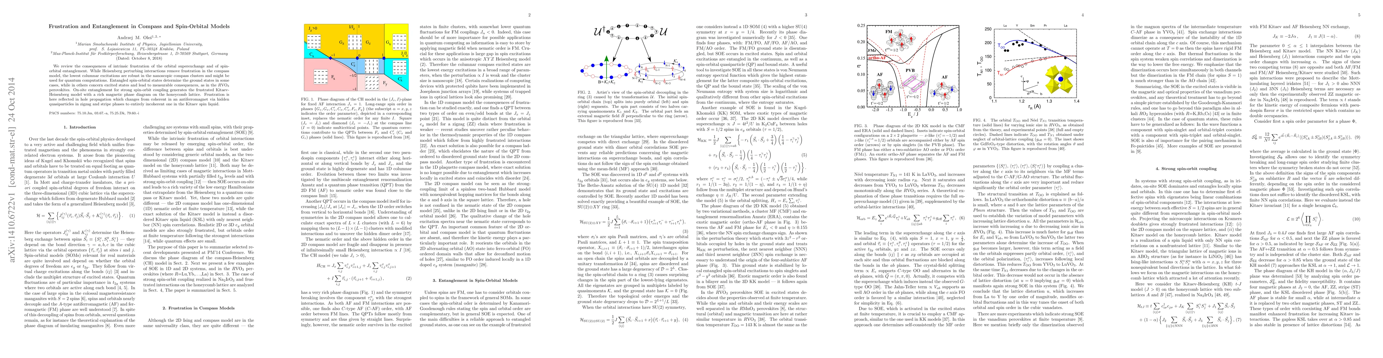 This paper reviews the effects of intrinsic frustration and spin-orbital entanglement in compass and spin-orbital models, highlighting how Heisenberg interactions can resolve frustration while maintaining robust excitations in nanoscopic clusters. It also discusses how entangled spin-orbital states influence ground and excited states, particularly in $R$VO$_3$ perovskites, and introduces the Kitaev-Heisenberg model with its complex magnetic phase diagram.