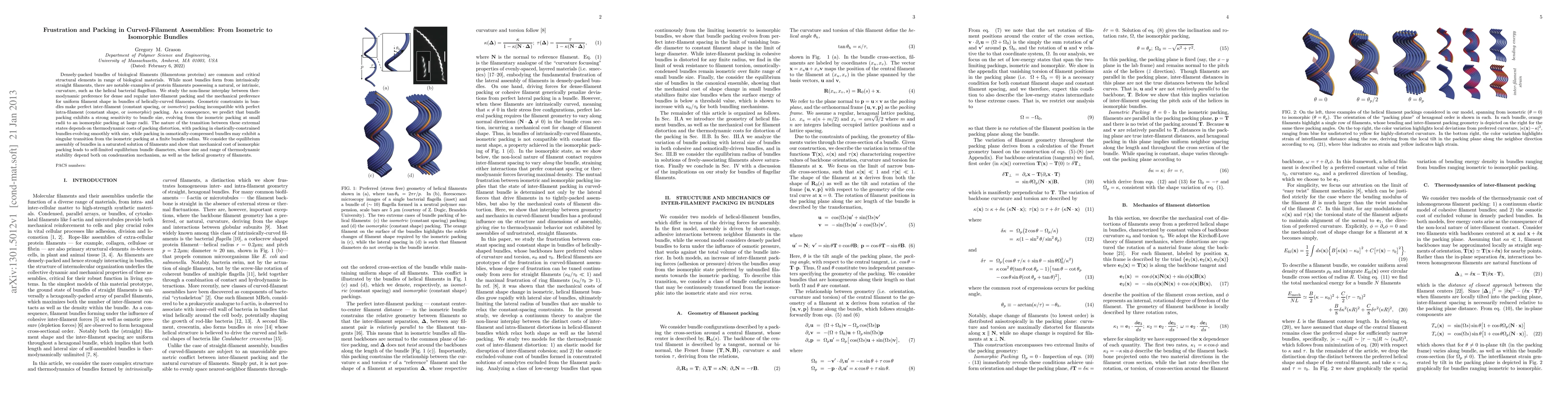 This paper investigates the packing dynamics of helically-curved biological filaments, exploring how thermodynamic and mechanical constraints influence bundle assembly. It predicts a transition from isometric packing in small bundles to isomorphic packing in larger ones, with the nature of this transition depending on the thermodynamic costs and the type of bundle constraints.